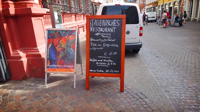 아이스크림 먹으며 가다가 발견한 표지판! Kurpfalzisches Museum인데 하이델베르크 중앙역에서 이 뮤지엄 포스터를 보았었다. 포스터 속 그림이 인상적이어서 가면 좋겠다 싶었는데 이렇게 발견했다. 하이델베르크 성에 다녀온 뒤 이곳에 가야지 싶었다.