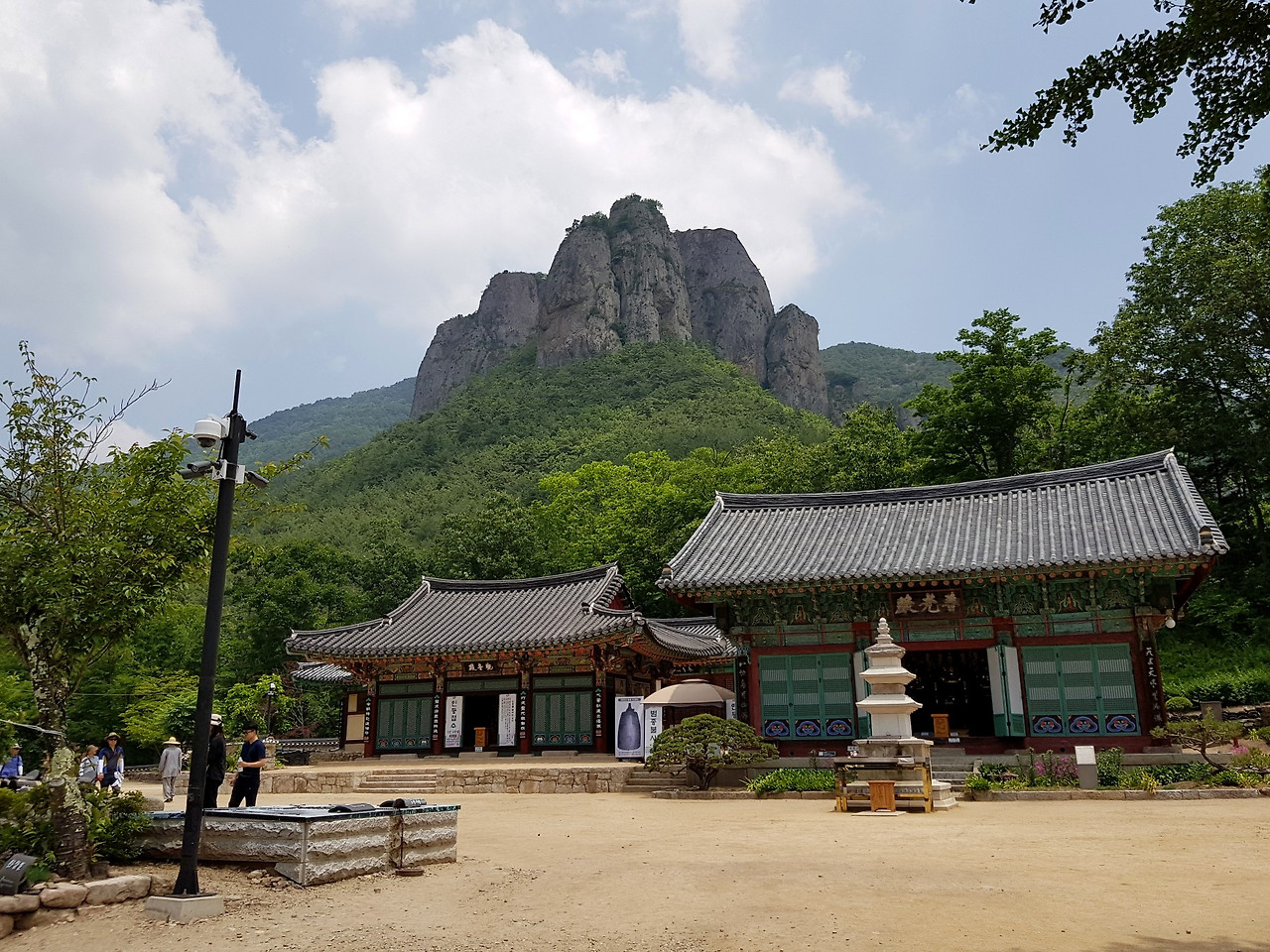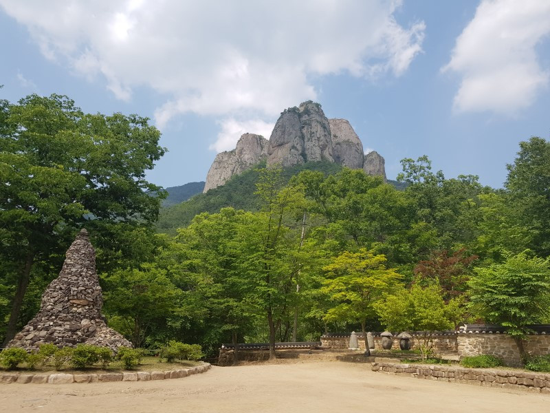 절 뒤로 보이는 큰 바위가 끝내준다.