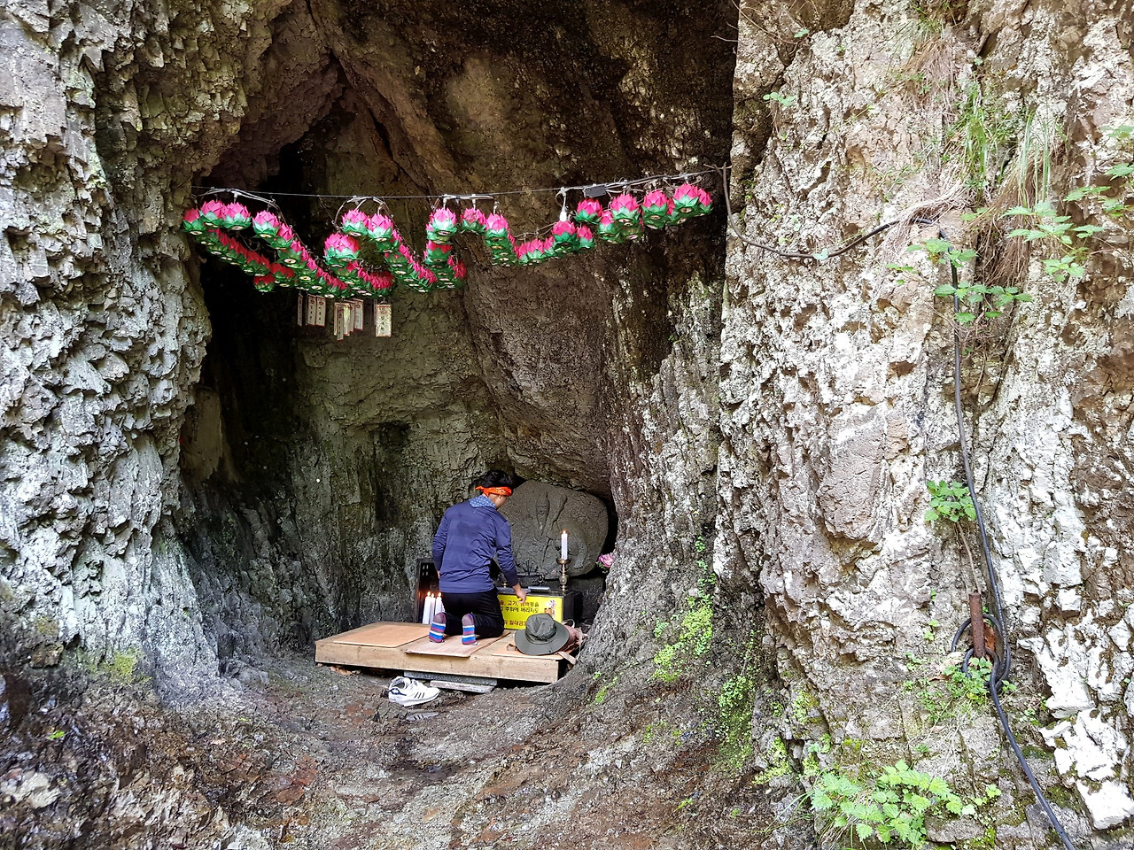 대전사 앞 벤치에서 조금 쉬며 기암을 바라보다가