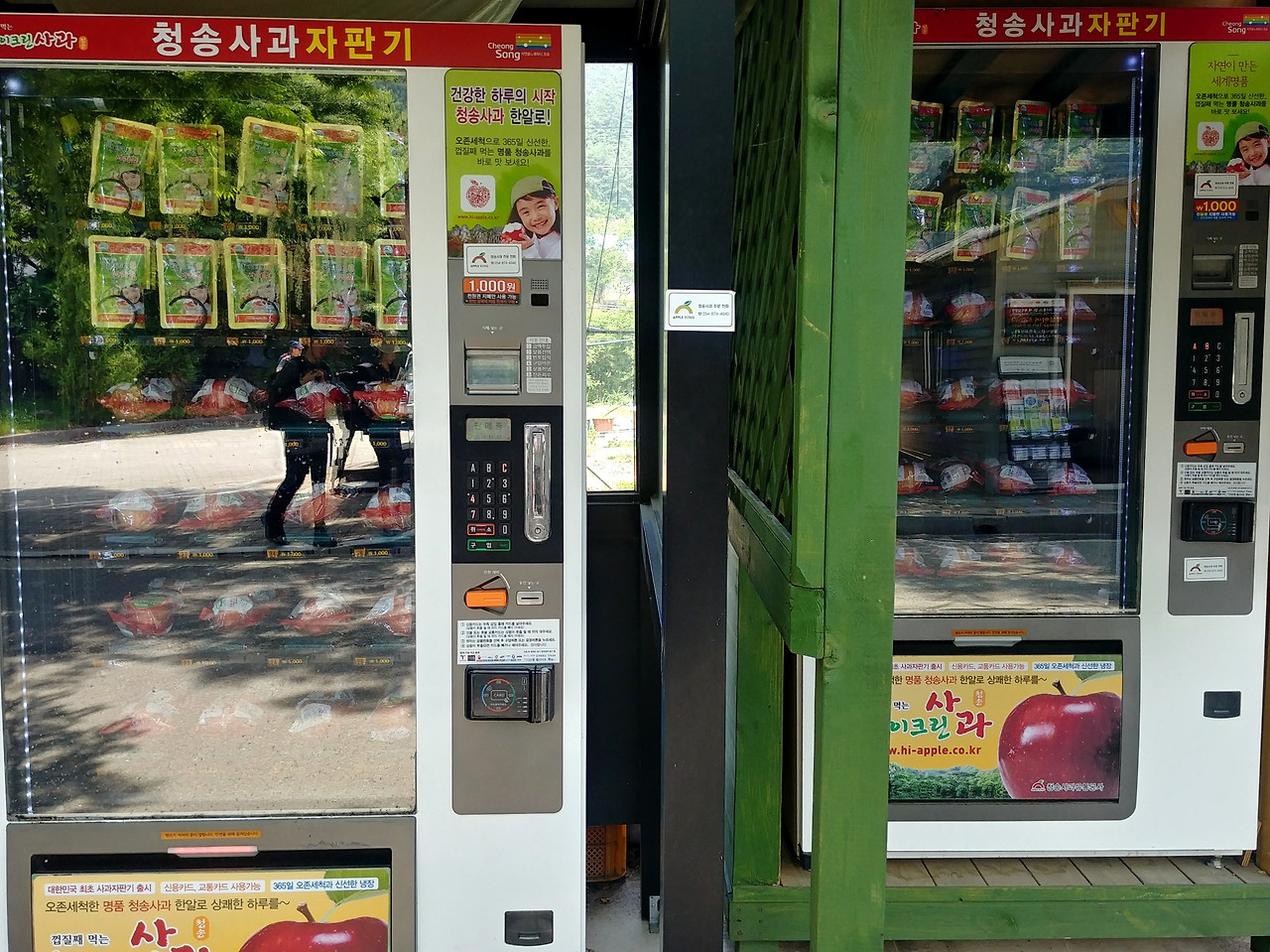 말로만 듣던 사과 자판기를 발견해서 신이 났다.