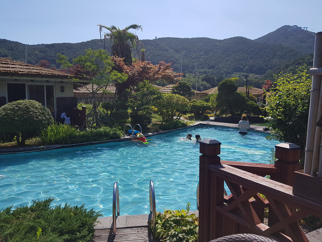 문을 열고 나가보니 벌써부터 아이들이 수영에 한창이더라.