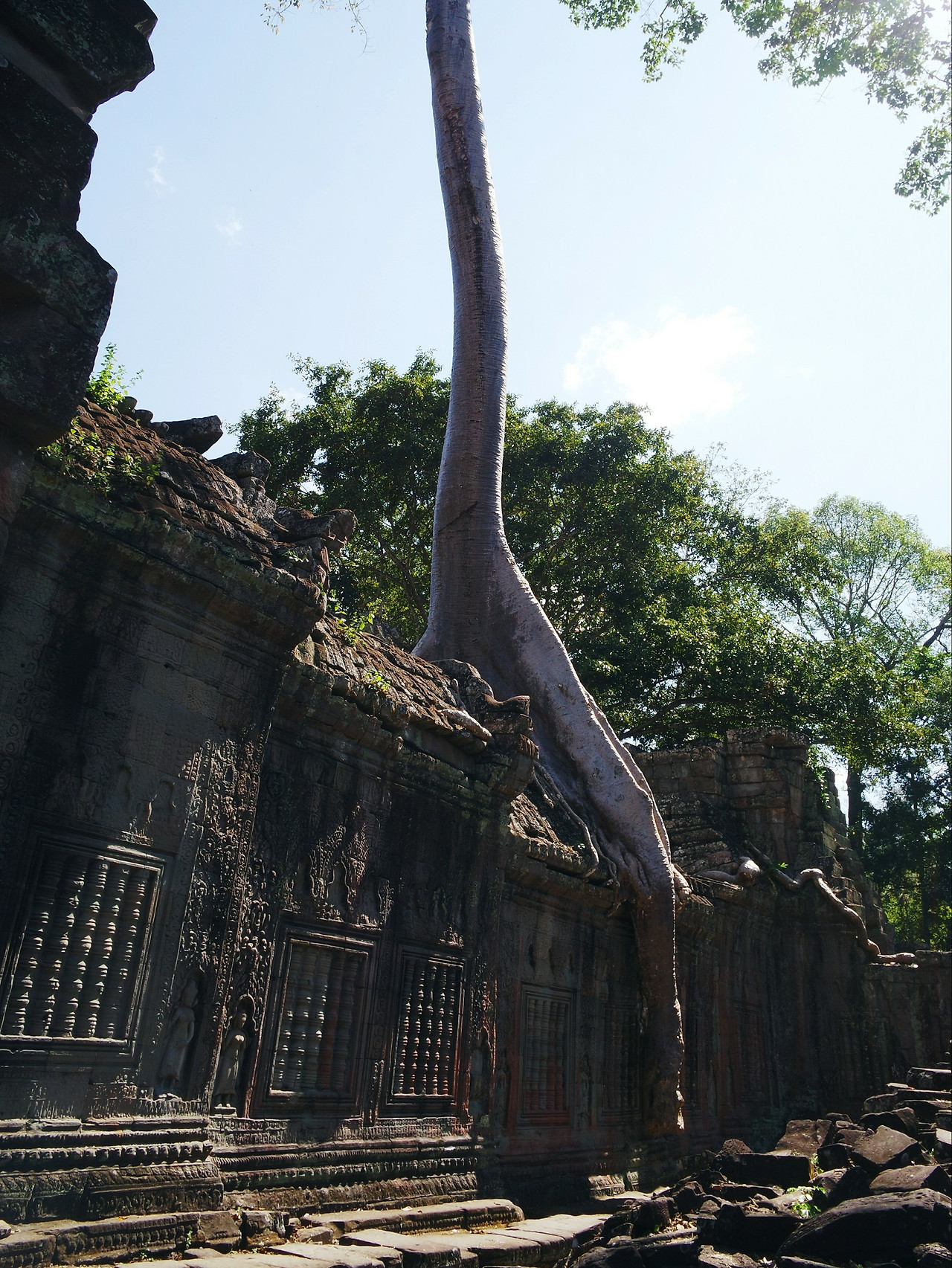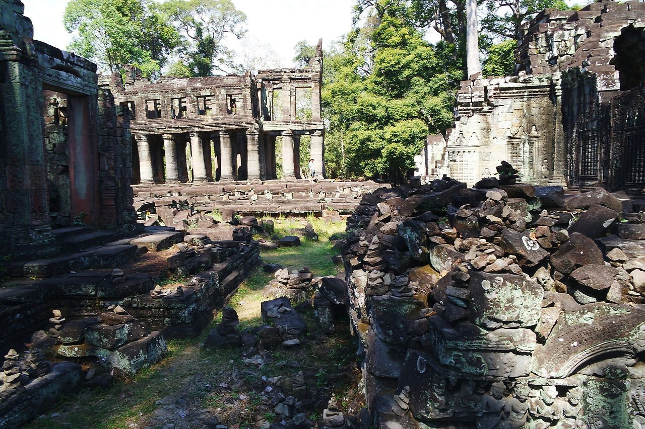 프레아 칸은 따 프롬보다 규모가 훨씬 더 컸지만 돌아다니는 사람들이 얼마 없었다. 그래서 더 조용했고 신비로운 분위기였다. 곳곳에 널린 돌조각들과 나무들을 보니 전날 다녀온 뱅밀리아가 떠오르기도 했다. 유적 중간중간에 뜬금없이 거대한 나무들이 자라고 있는 모습이 신기했다.