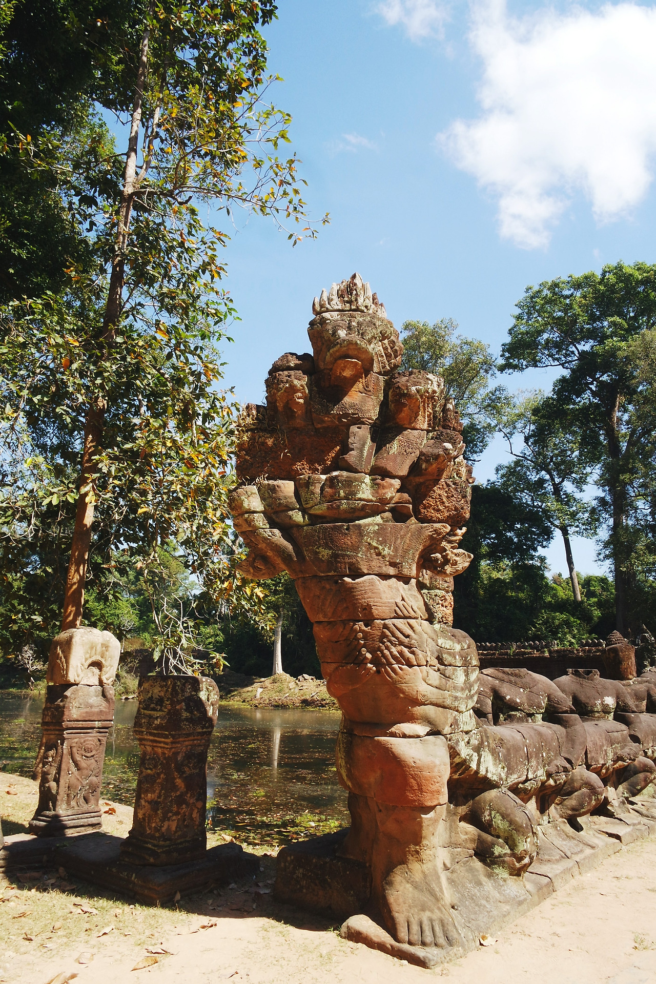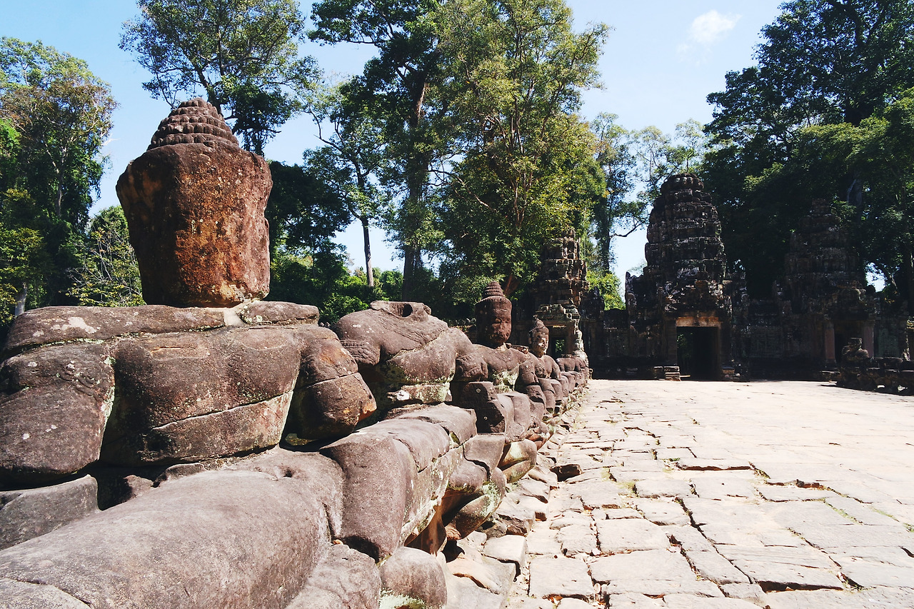 입구에 들어서면 목없는 보초병이 보인다. 참파, 아유타야와의 전쟁 시절에 석상의 목들이 다 잘려 나갔다고 한다. 오죽하면 캄보디아에는 몸통만 태국에는 머리만 남아있다는 우스갯소리가 돌 정도이다.