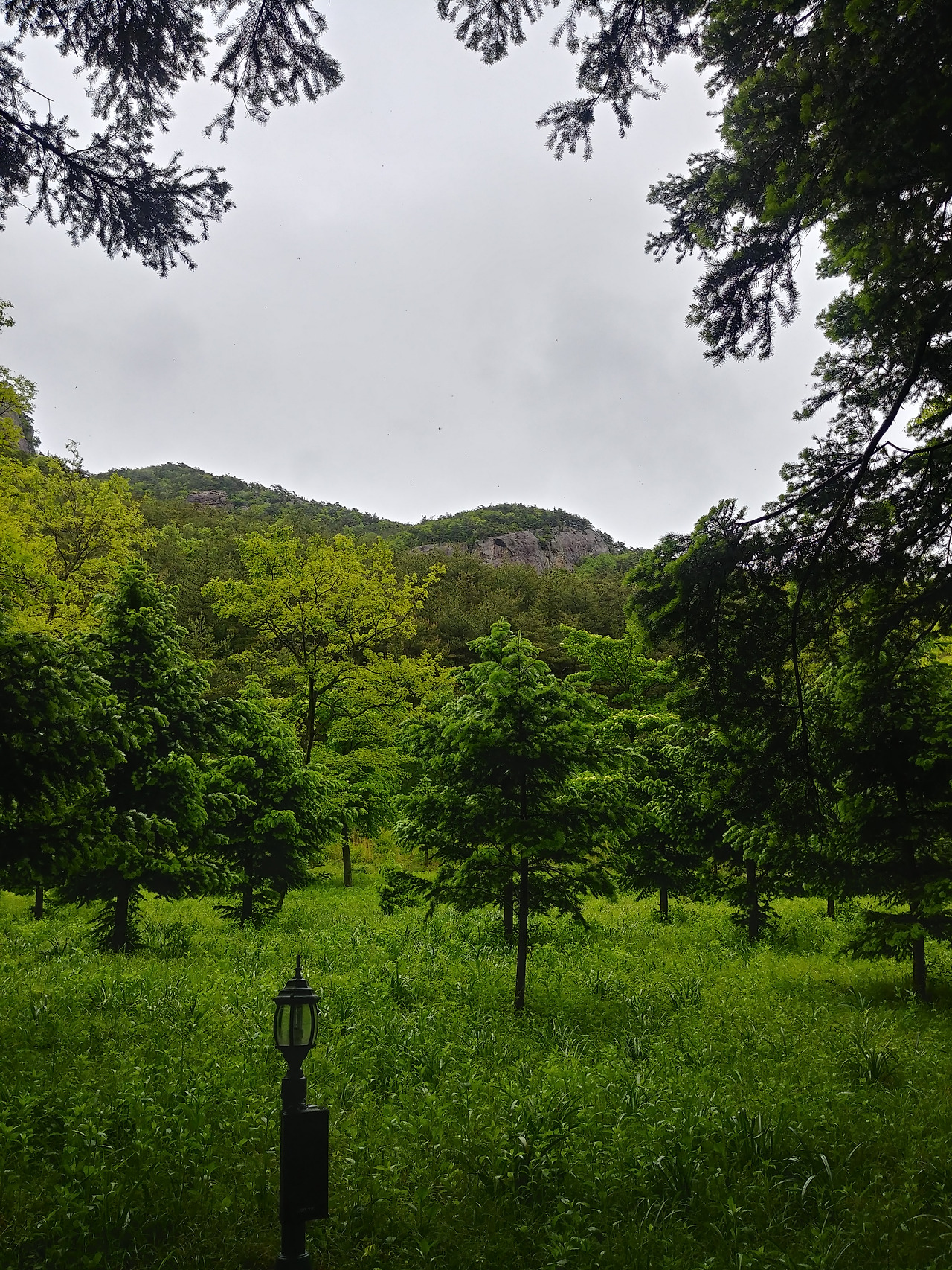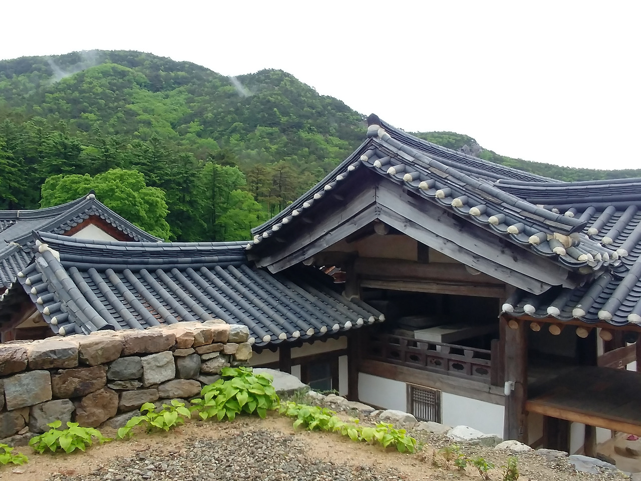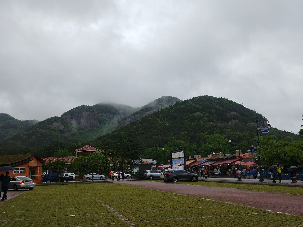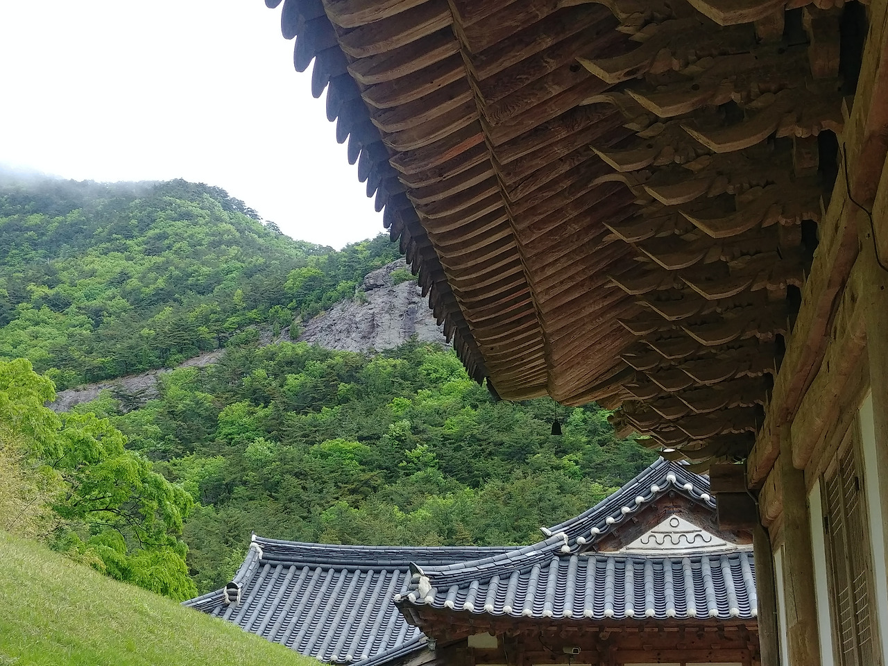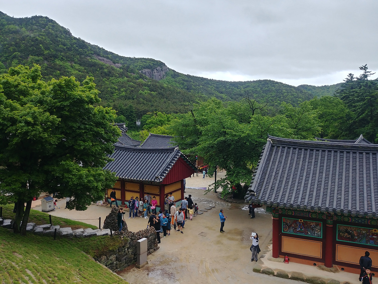 절을 두르고 있는 산봉오리들이 장엄했다. 구름들이 산봉오리들을 휘감고 있었다. 하늘에서 한두방울 비가 내렸지만 아무도 신경쓰지 않았다. 비 오는 날도 나름의 운치가 있어 좋았다.