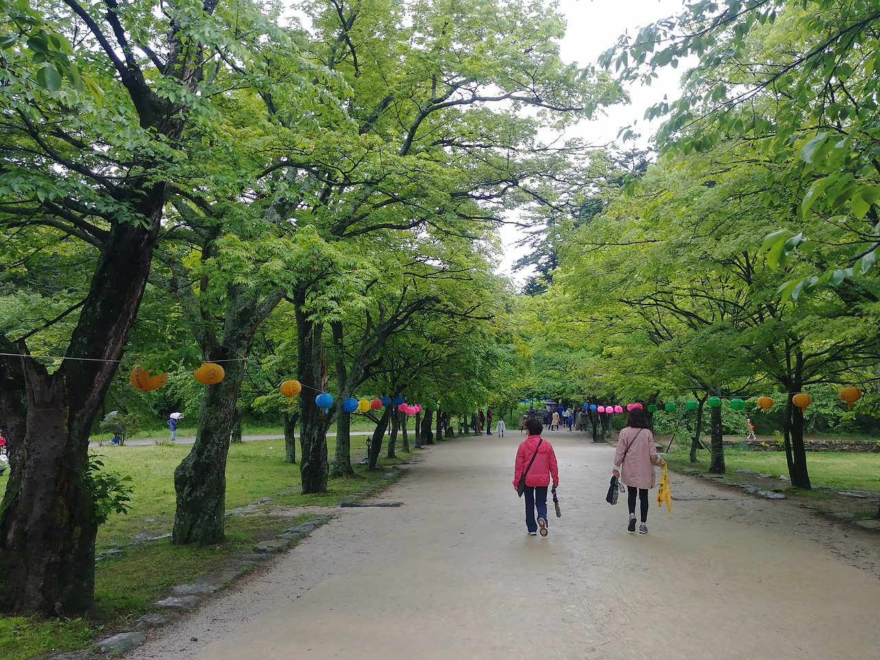 길 좌우로 화사한 색상의 등들이 대롱대롱 매달려 있었다.