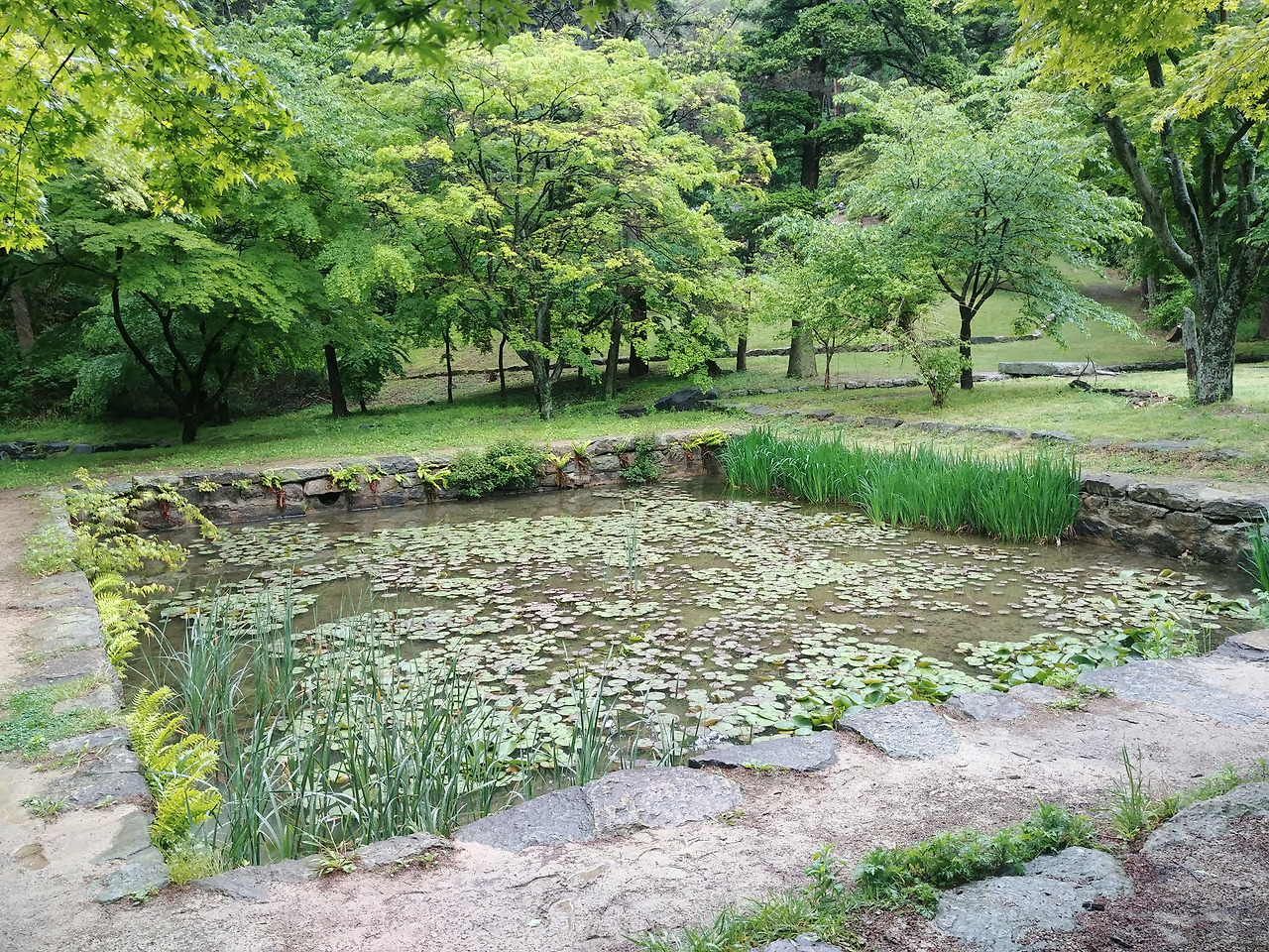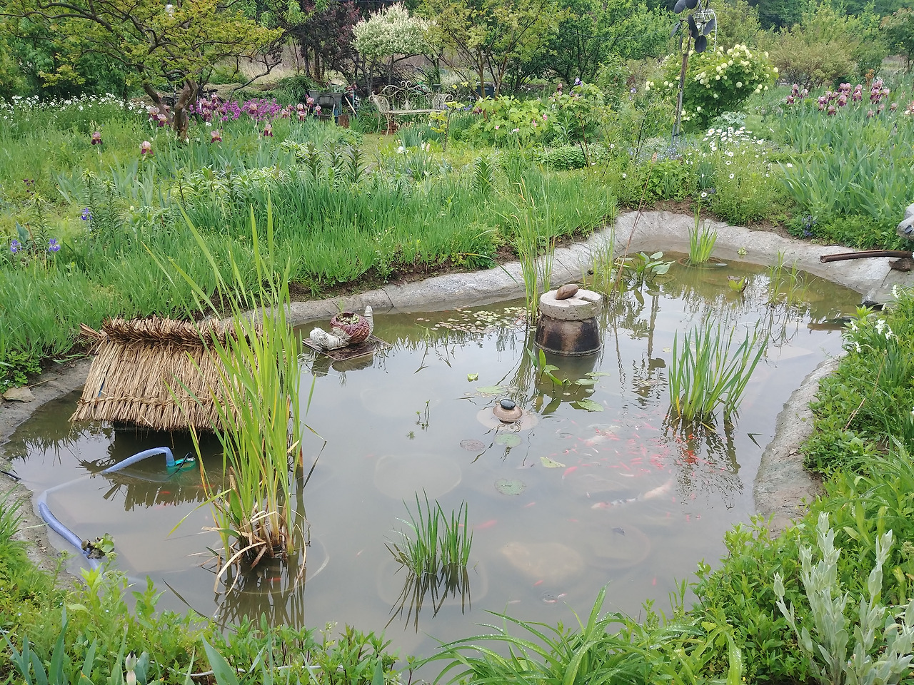정원 가운데 만들어진 연못에는 붉은 금붕어인지 잉어인지 물고기들이 가득했다.