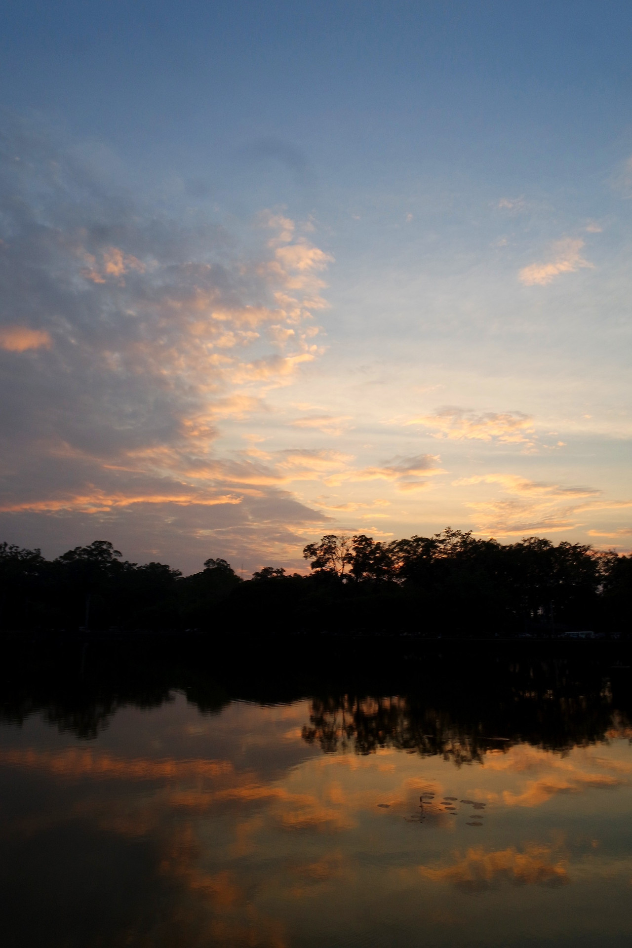 앙코르 와트에서 한참동안 일몰 풍경을 바라보다 나왔다. 해자 위 다리를 건널 때 보이던 반영이 참 아름다웠다. 아름다운 노을을 뒤로한 채 저녁 식사를 할 식당으로 이동하기 위해 툭툭 위에 올라탔다.