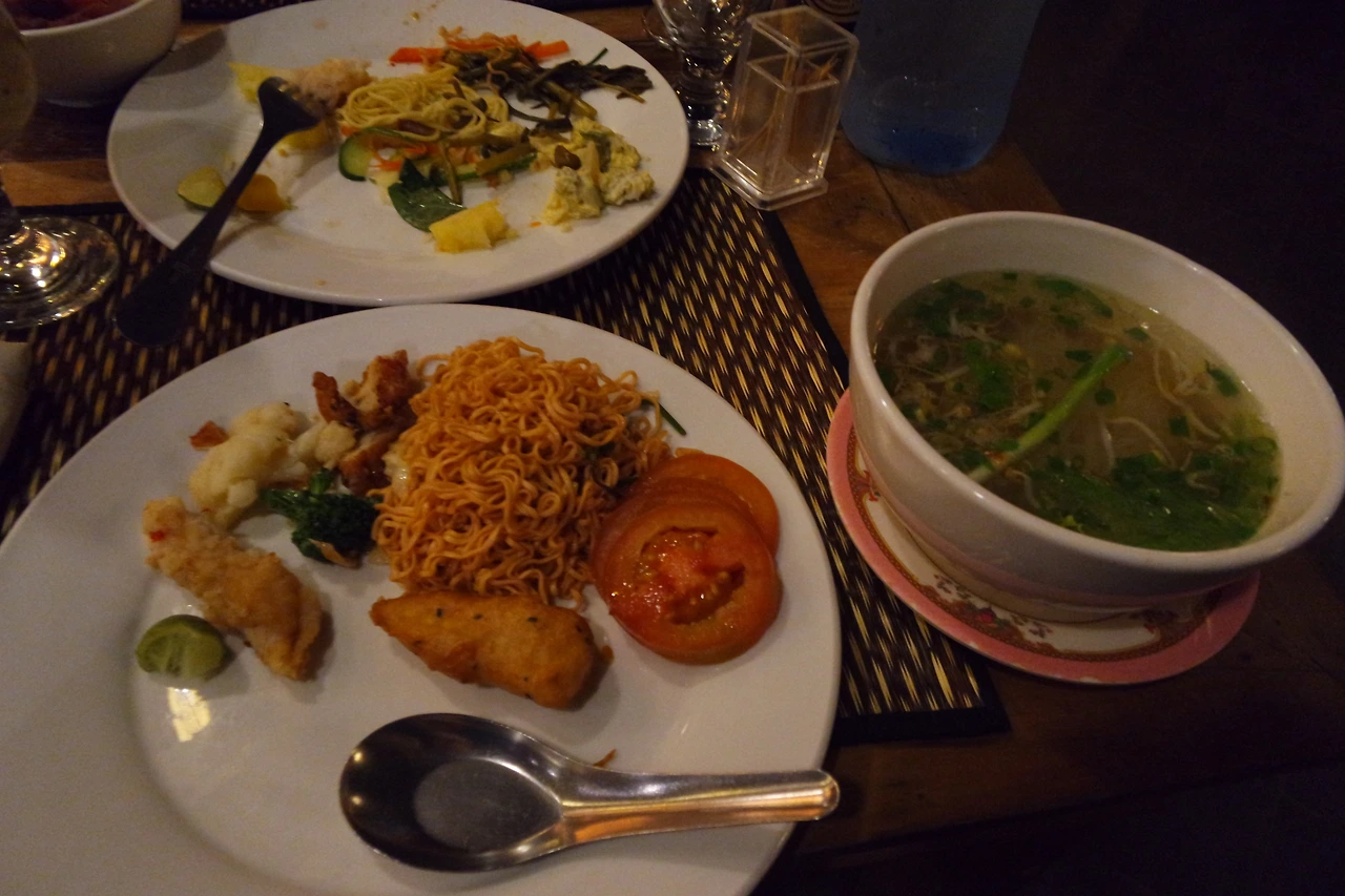 별별 음식들이 다 있어서 여러번 떠다 먹었다. 쌀국수랑 볶음면, 튀김류, 알 수 없는 동남아 요리들과 과일. 배부르고 맛있게 잘 먹었다.