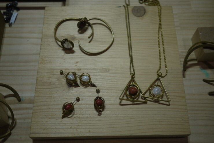 여기 저기 좌판들을 기웃거리다가 마주하게 된 가죽 소품 가게. 가죽으로 꽃 모양의 브로치나 목걸이를 만들어 팔고 계셨다. 하나하나 수작업으로 만든거라서 모양이나 색이 각기 달랐다.