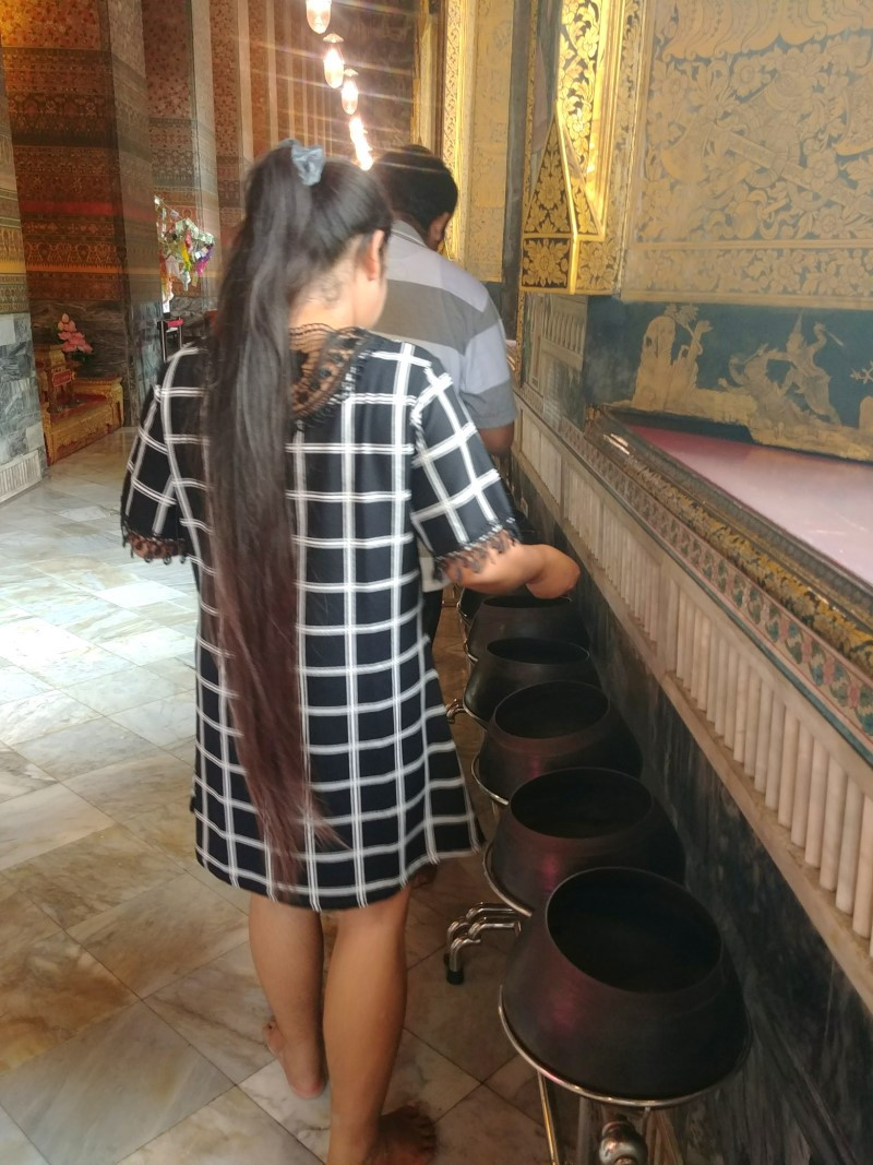 맨발로 사원 돌바닥 위를 걸어다니는데 시원해서 좋더라.