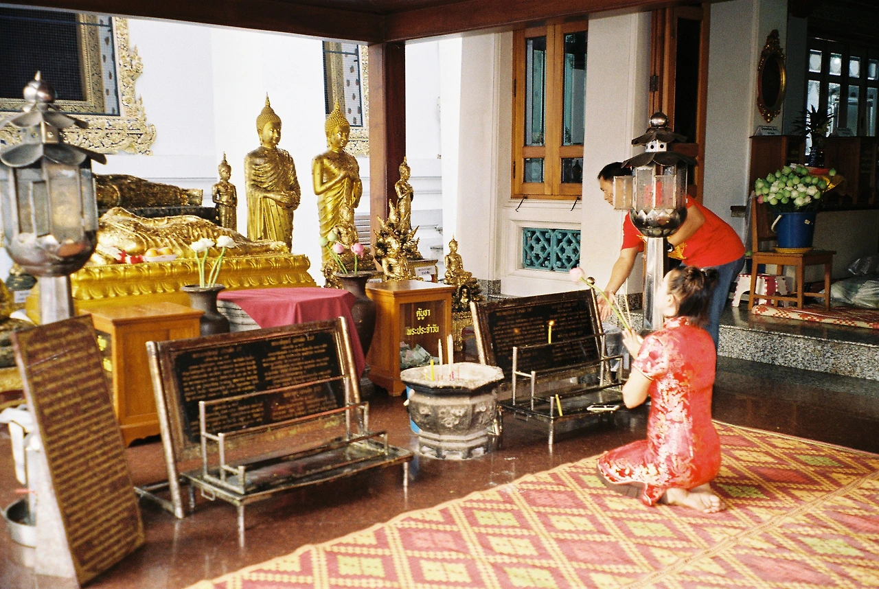 사람들은 불상 앞에서 향을 피우며 기도를 드리고