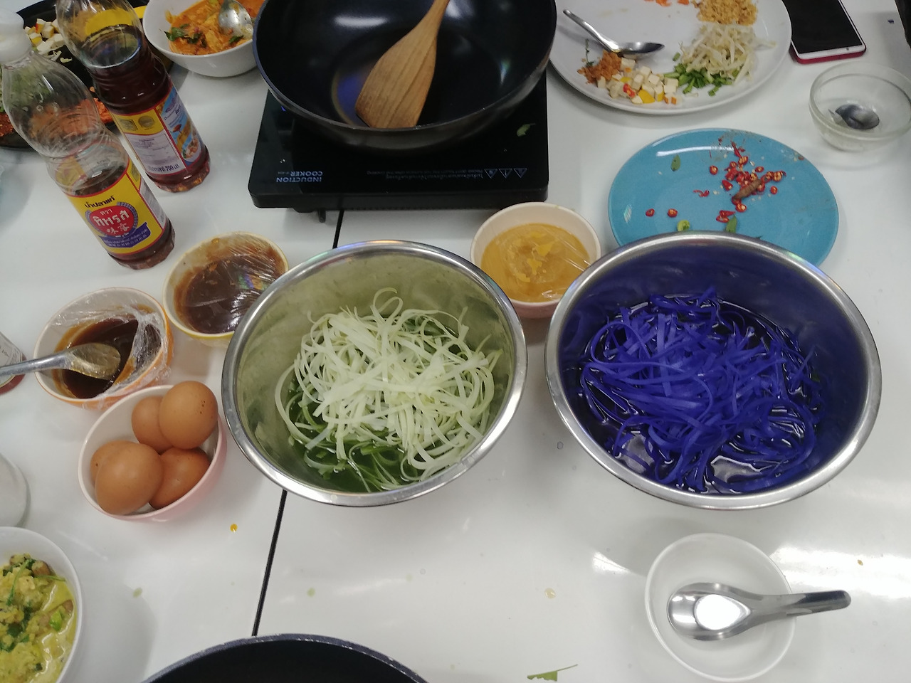 완성된 커리는 그릇에 덜어두고 이제 팟타이 만들기 돌입!