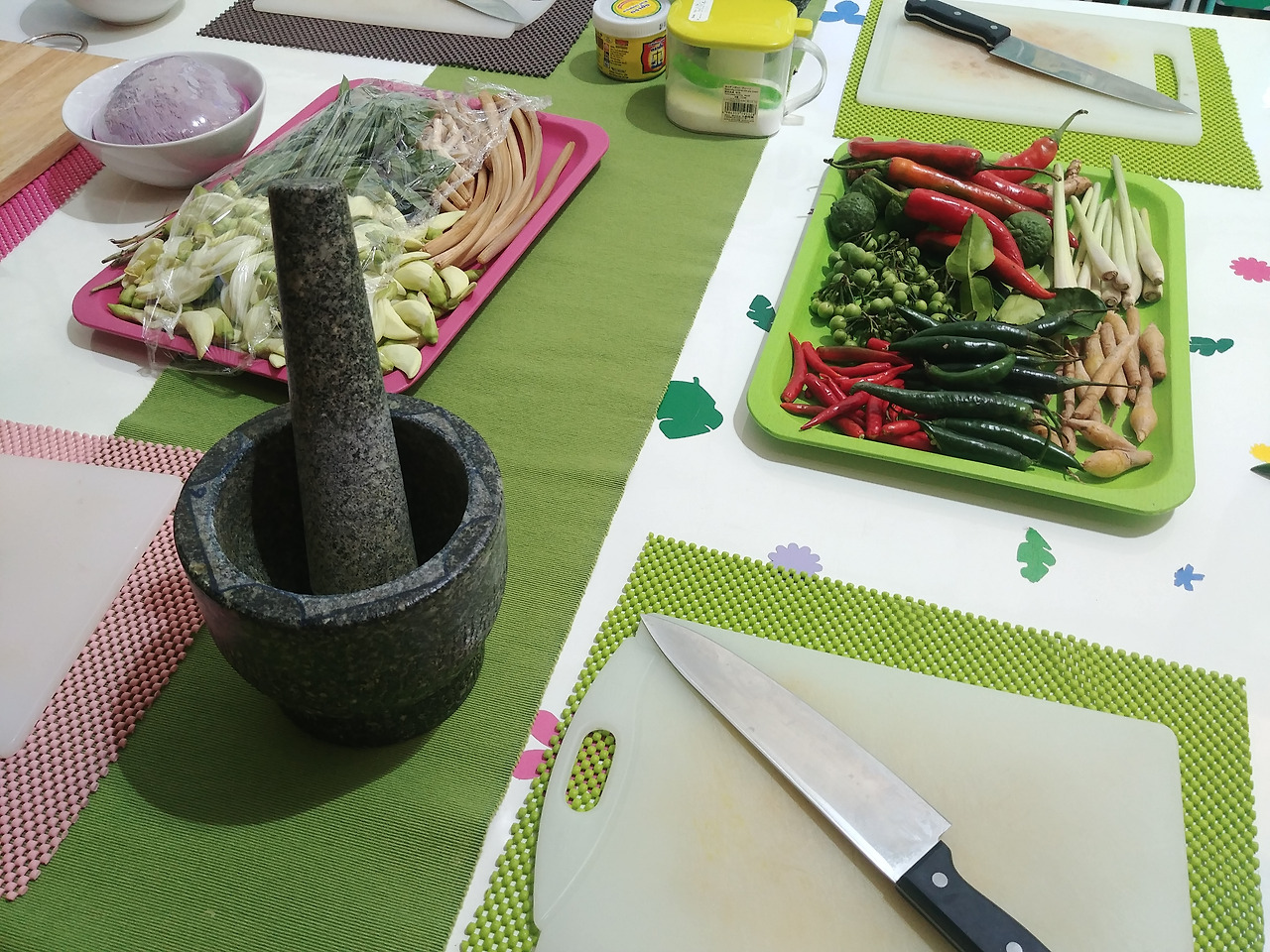 준비된 재료들 설명을 듣고 썰고 다지고 절구에 넣어서 빻고
