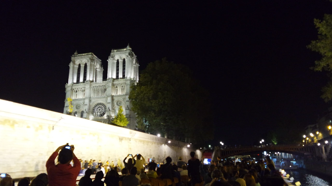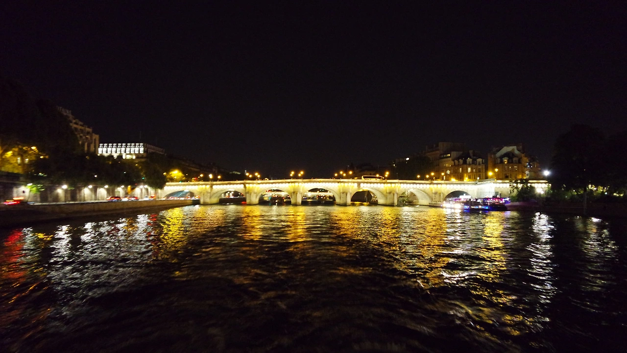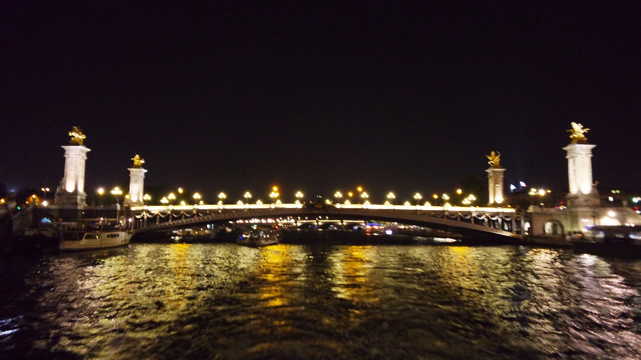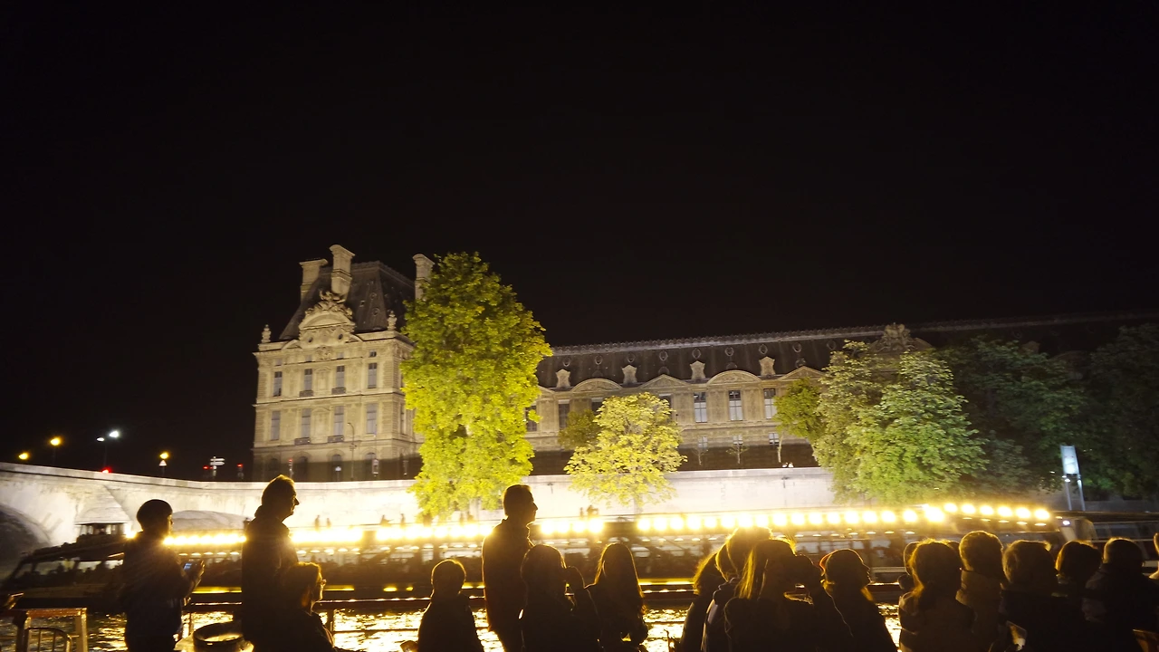 불 켜진 다리와 에펠탑이 겹쳐 보이던 순간, 사람들은 걸음을 멈추고 이 순간을 카메라에 담는다.
