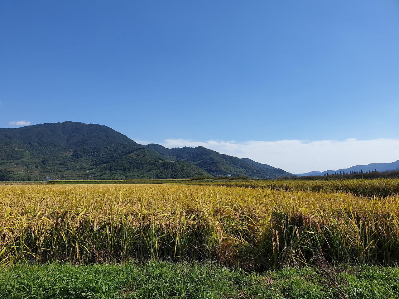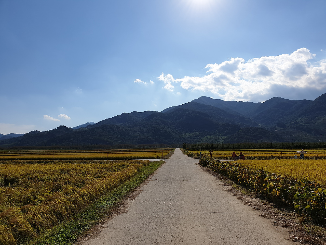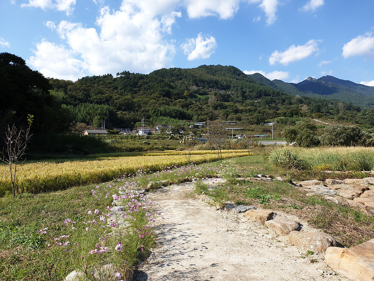 노랗게 익은 벼들이 가득한 논길이 끝도 없이 펼쳐진 풍경이 장관이었다.