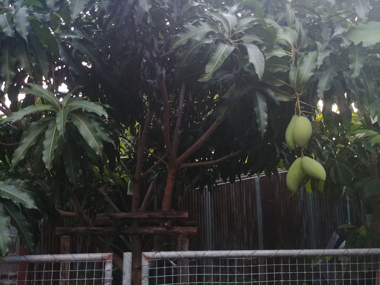 이렇게 나무에 매달린 새파란 망고를 보기는 처음이었다.