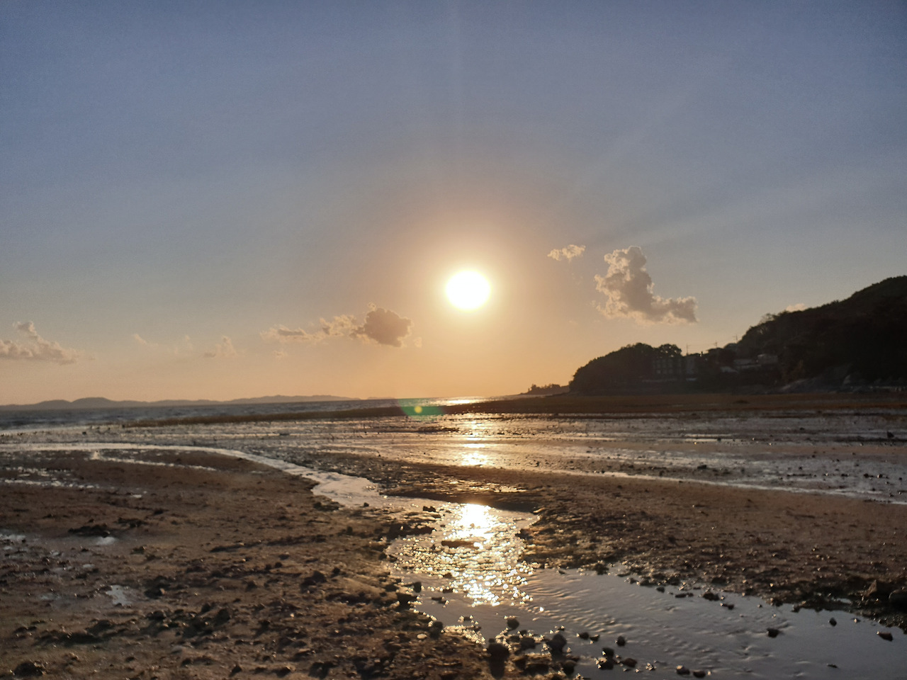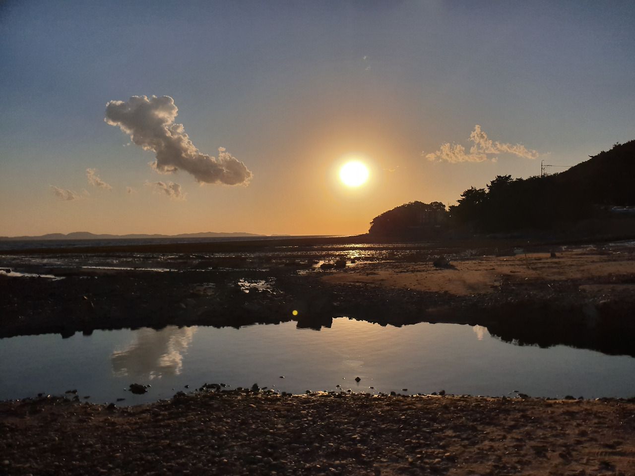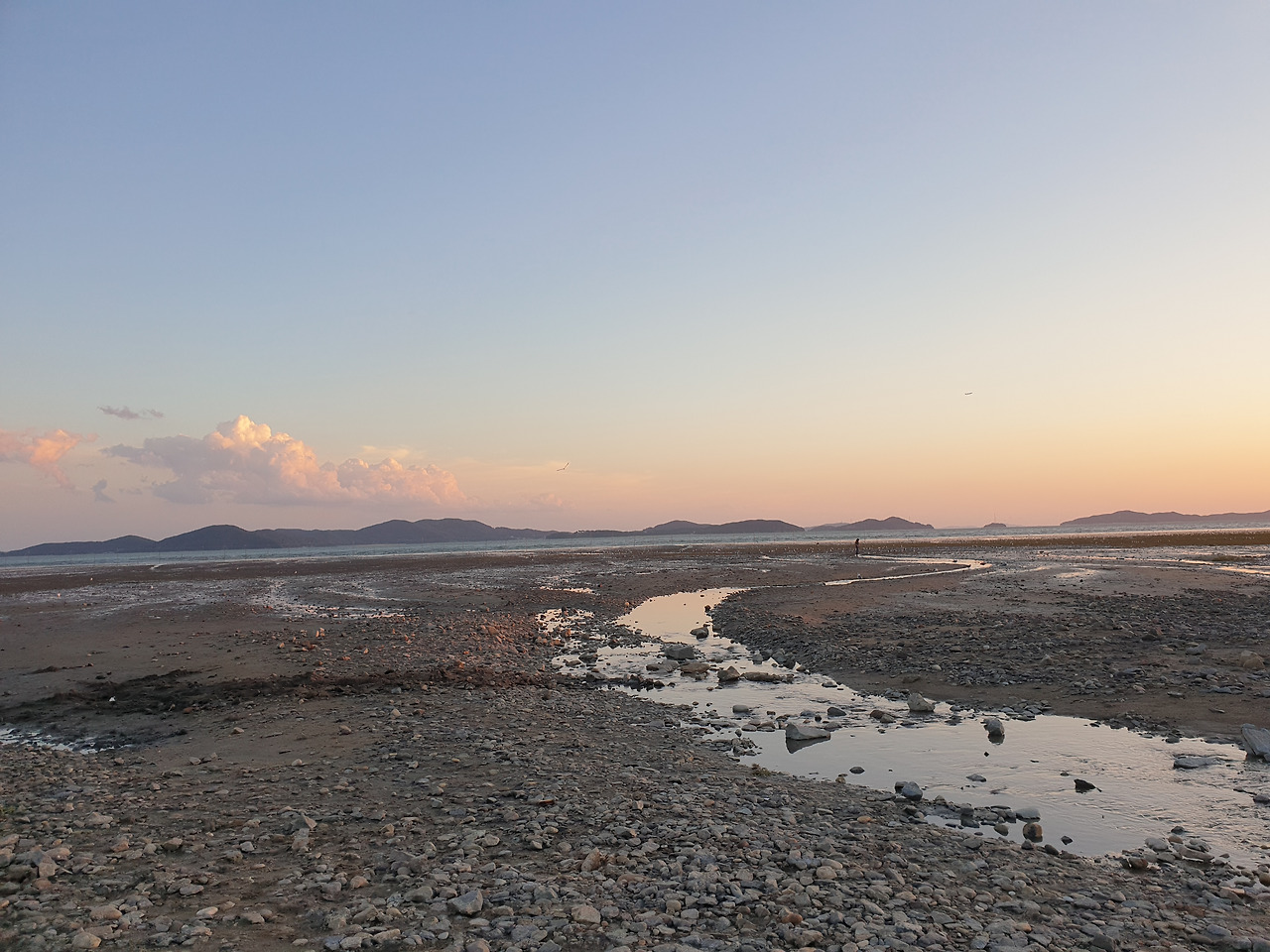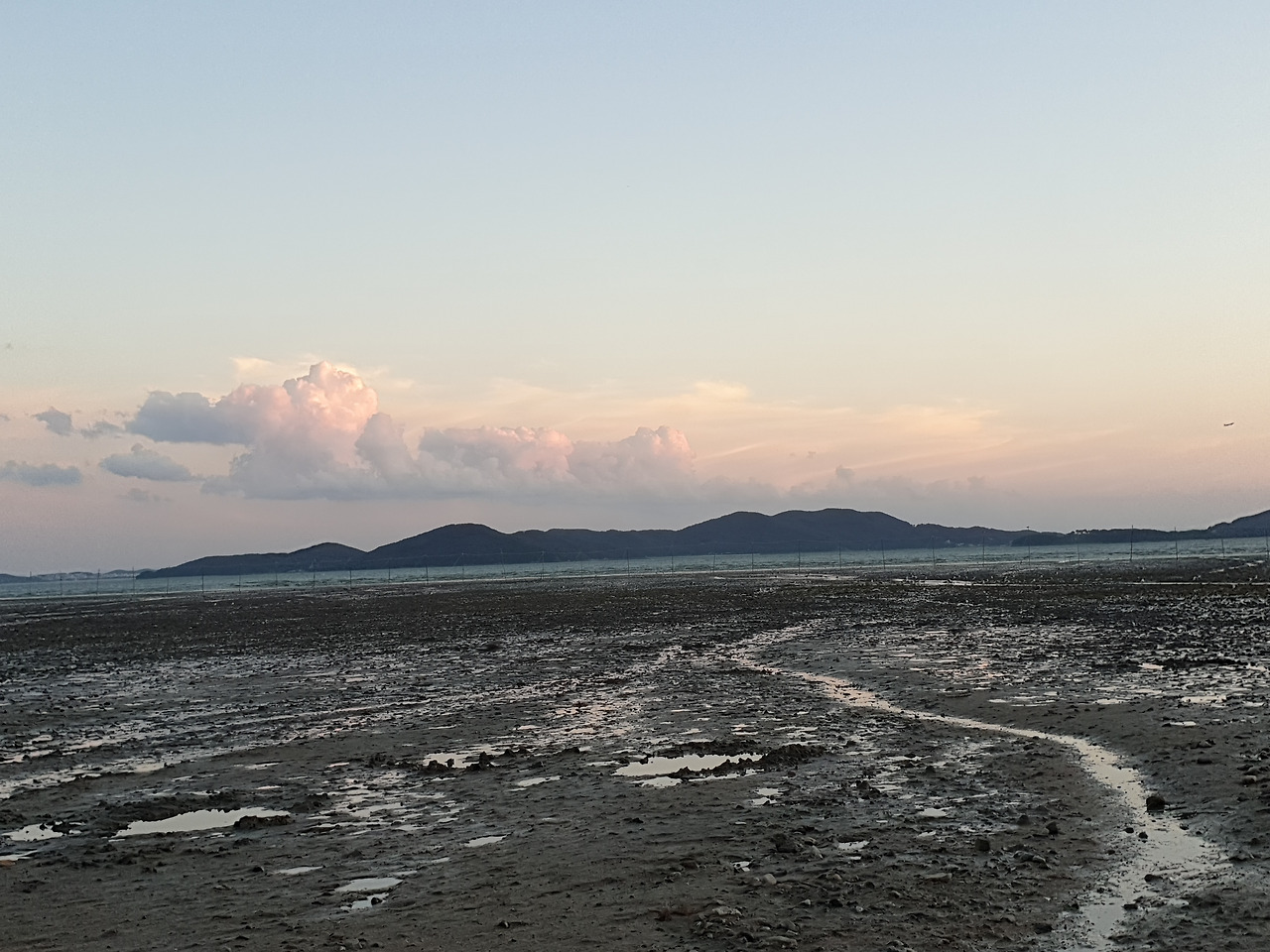군데군데 채워진 바닷물 위로 은은한 노을낀 하늘이 비쳤다.
