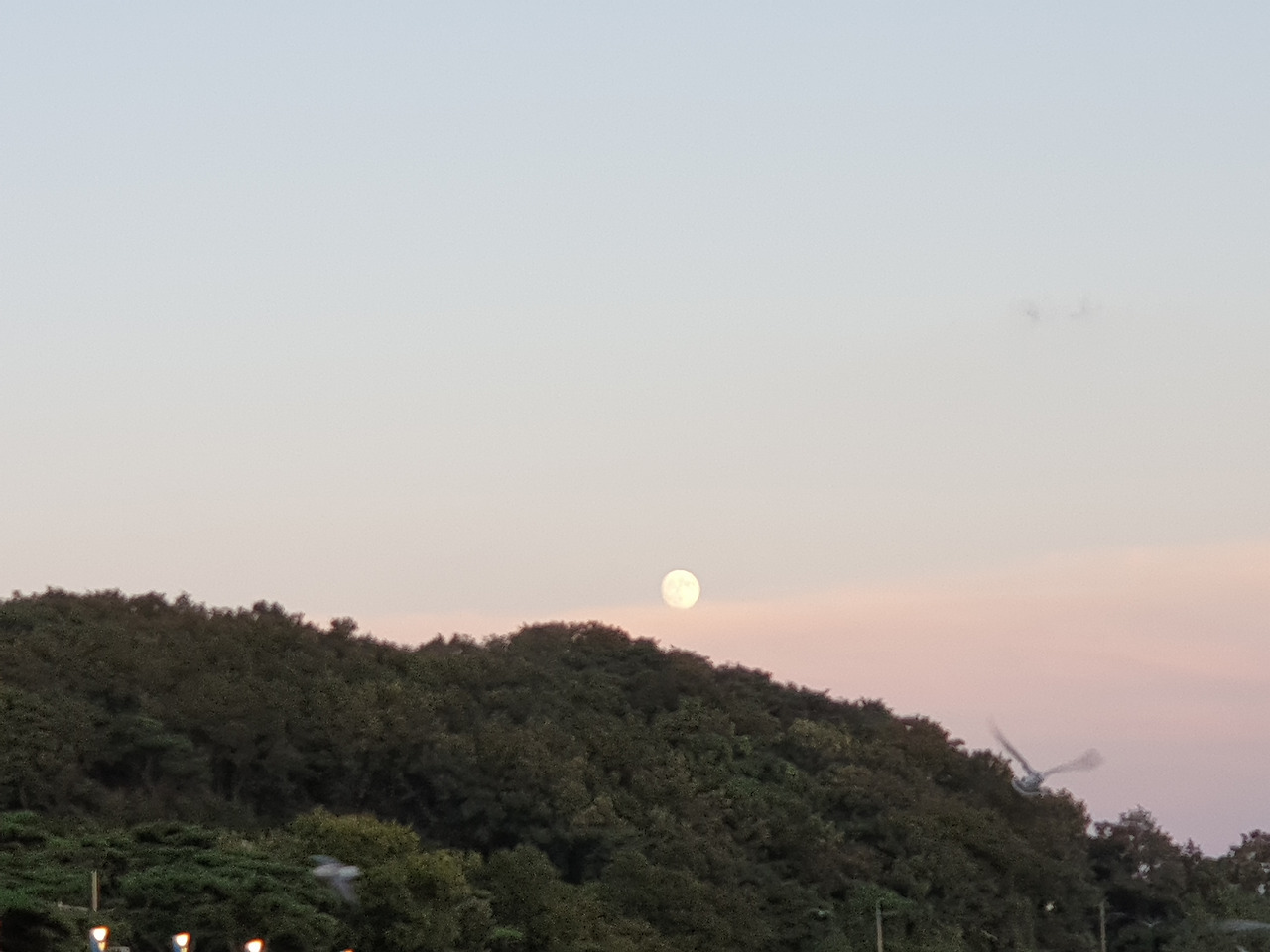 핑크빛 구름 위로 살포시 떠오른 달이 귀여웠다.