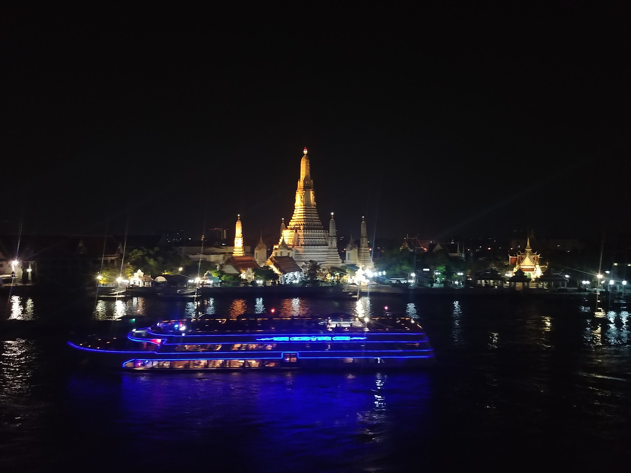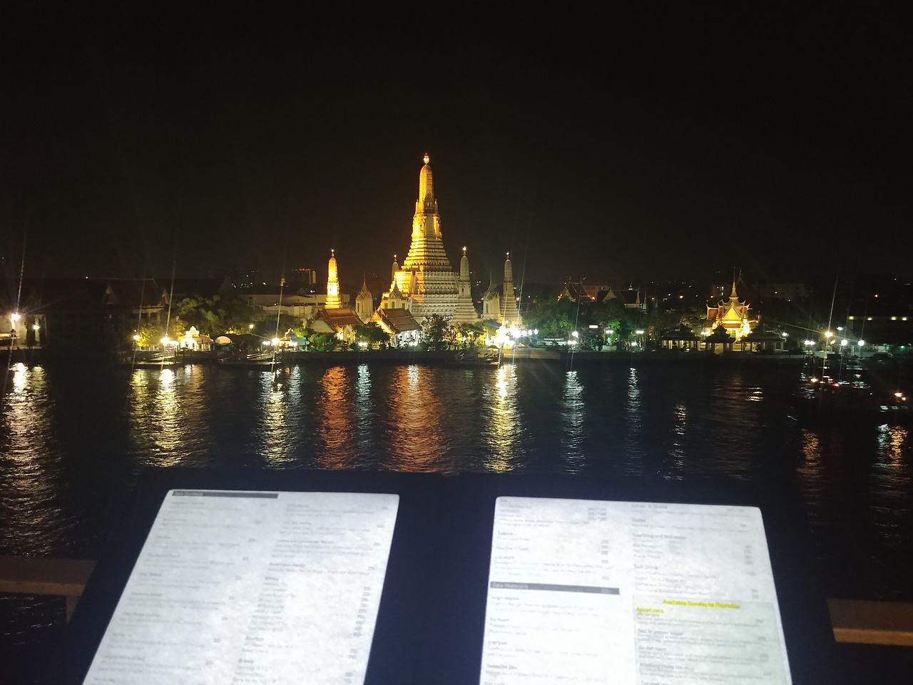 우리는 왓 아룬 야경과 짜오프라야 강이 한눈에 보이는 곳에 자리잡았다.