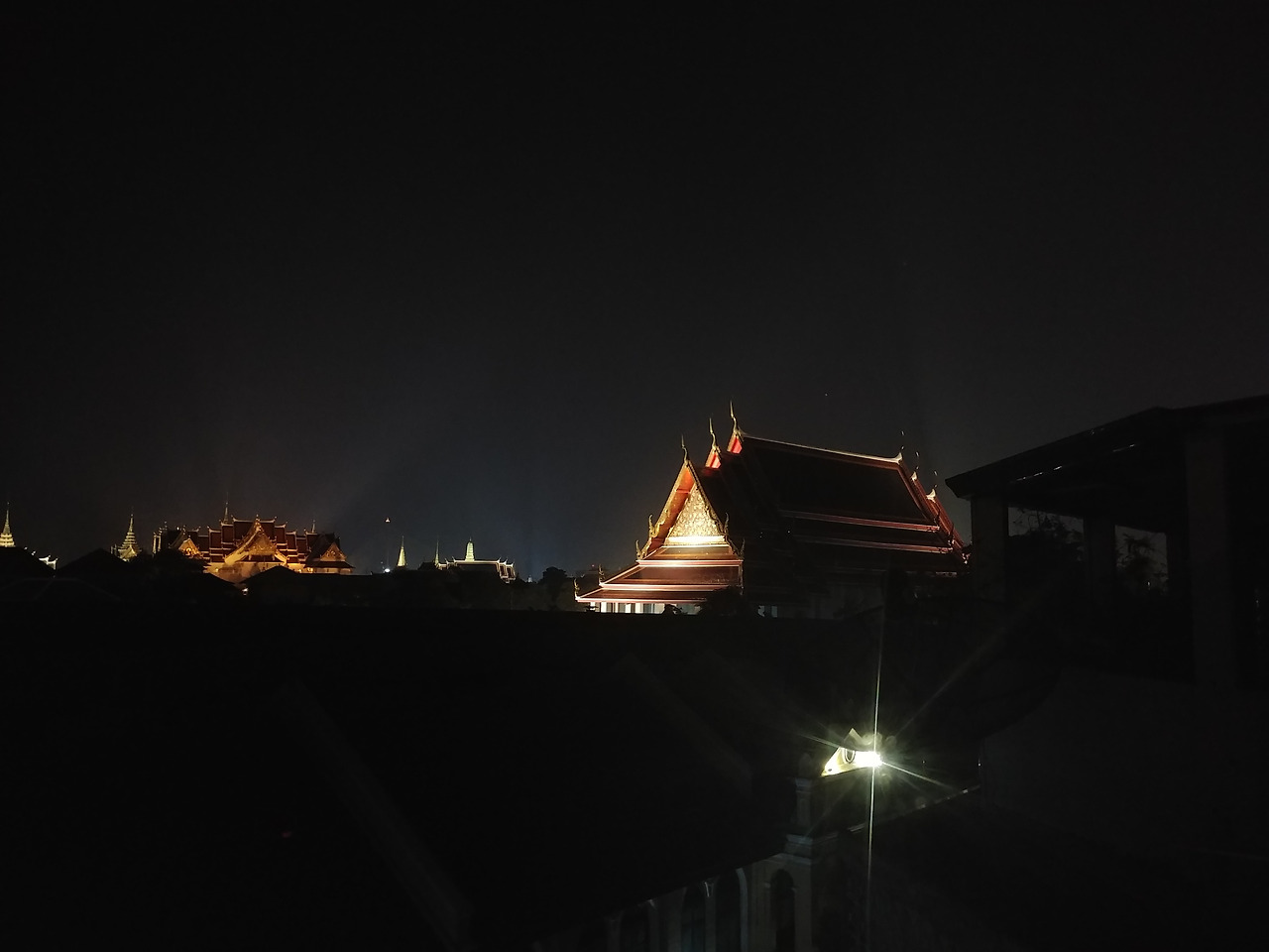 멀리 사원 불빛을 배경으로