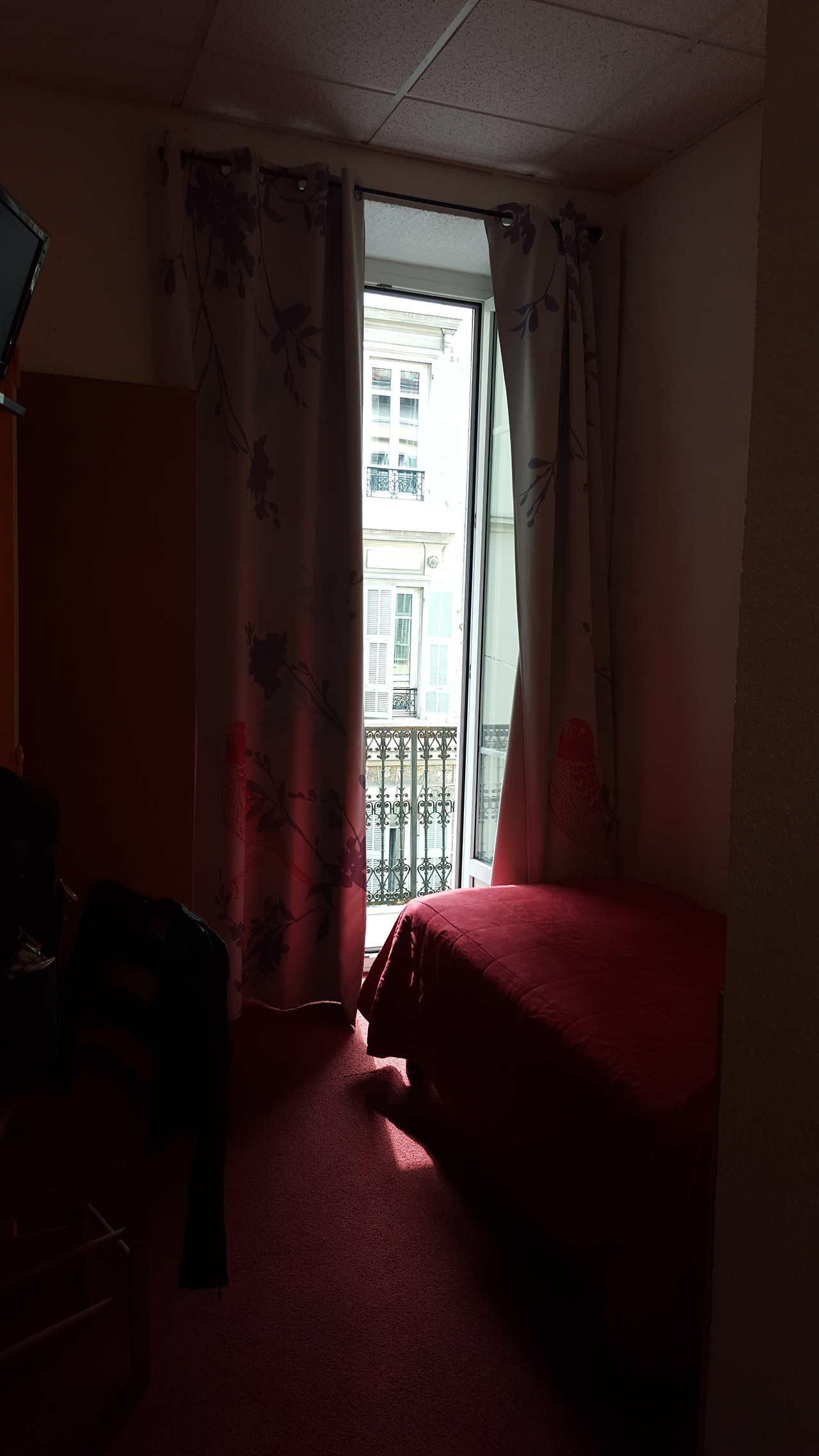 니스 중앙역에 도착해 버스에서 내리고 한 2분정도 걸었던가? 내가 삼일동안 머무를 호텔을 찾았다. 여태 많은 숙소들이 나에게 쇳덩이로 만든 커다랗고 무거운 열쇠를 줬었다. 반면 이 호텔은 카드키를 줘서 들고다니기 무척 편했다. 방 안으로 들어와 창을 열고 니스 시내를 구경 했다. 시원한 공기를 맡으며 잠깐 숨을 돌리며 여독을 풀었다.