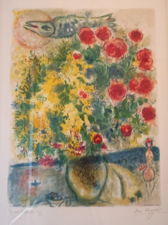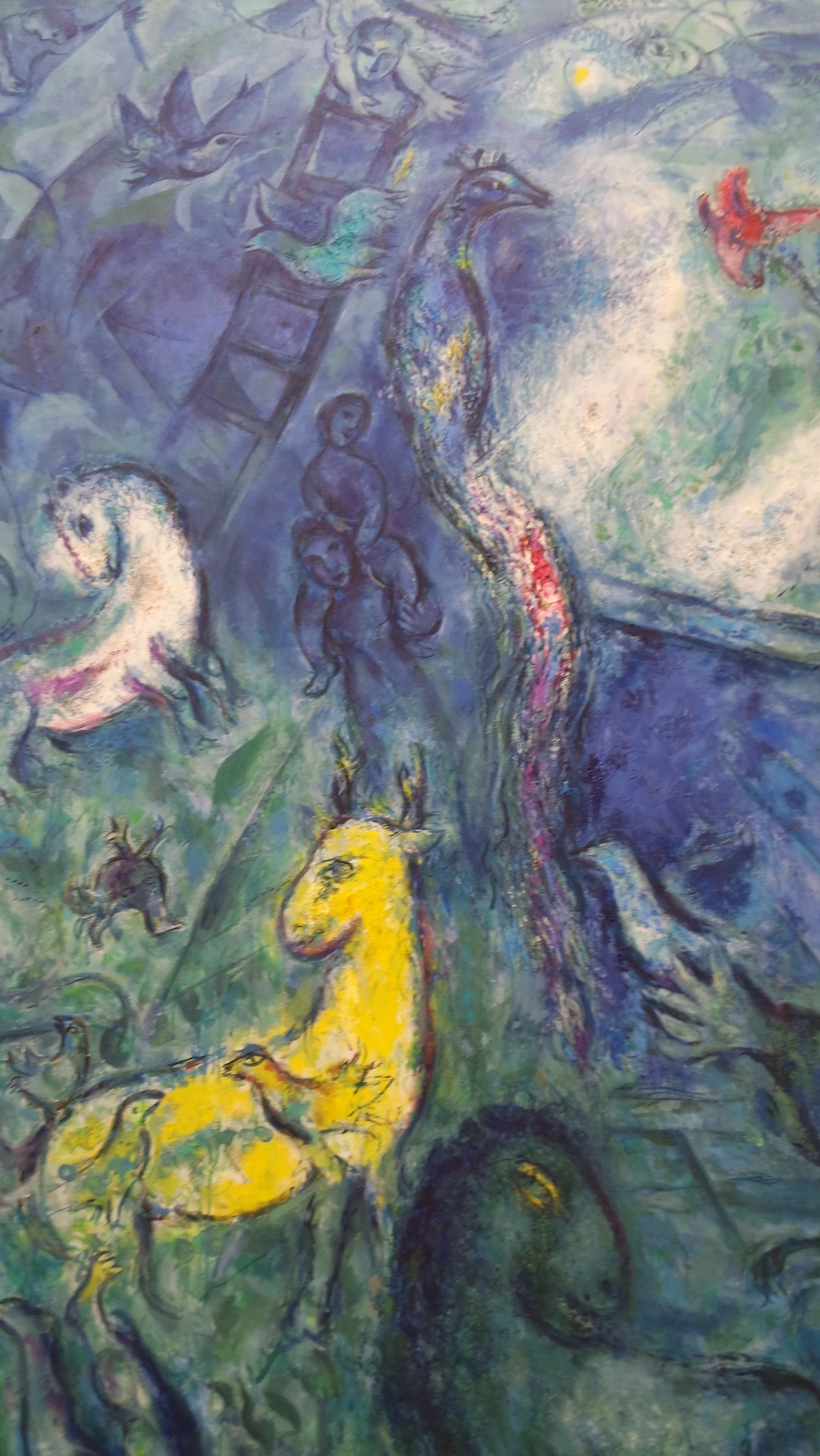 사실 기억에 남는 작품들 대부분은 성서 이야기가 아닌 꽃이 담긴 그림들이었다. 이쪽 전시관에 있던 그림들은 담겨있는 이미지들이 비슷했다. 원색의 꽃들이 담긴 부케, 연인, 물고기, 새, 해와 달, 바다 등등. 샤갈이 비슷한 이미지를 의도적으로 구현해낸 것인지 아니면 느낌대로 그리다 보니 이렇게 된 것인지 궁금했다.