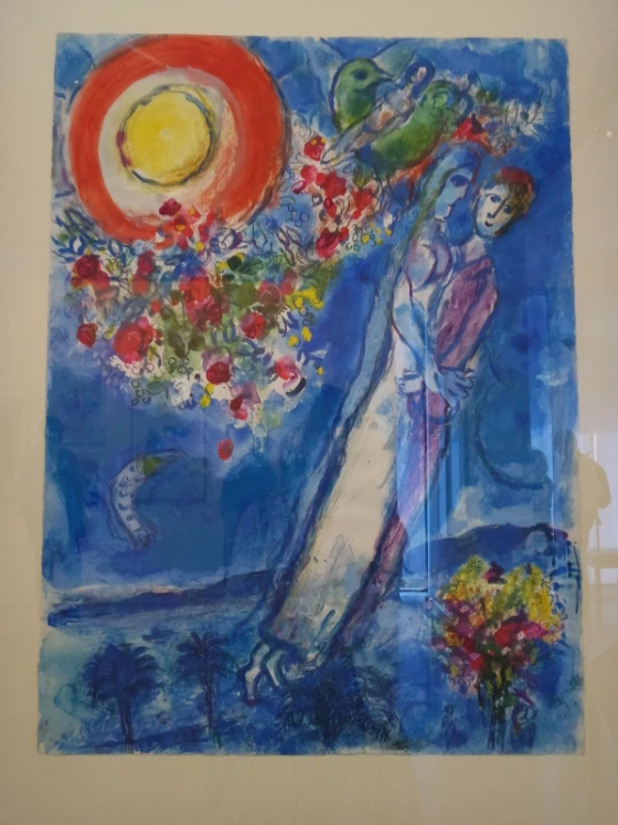 샤갈 미술관에서 제일 마음에 들던 작품은 바로 이 그림이다. 그림을 바라보고 있으면 마음이 절로 따뜻해졌다. 꽃 속에 파묻힌 얼굴을 맞댄 연인을 바라보니 나도 사랑에 빠져드는 것 같았다.