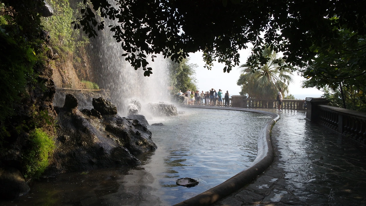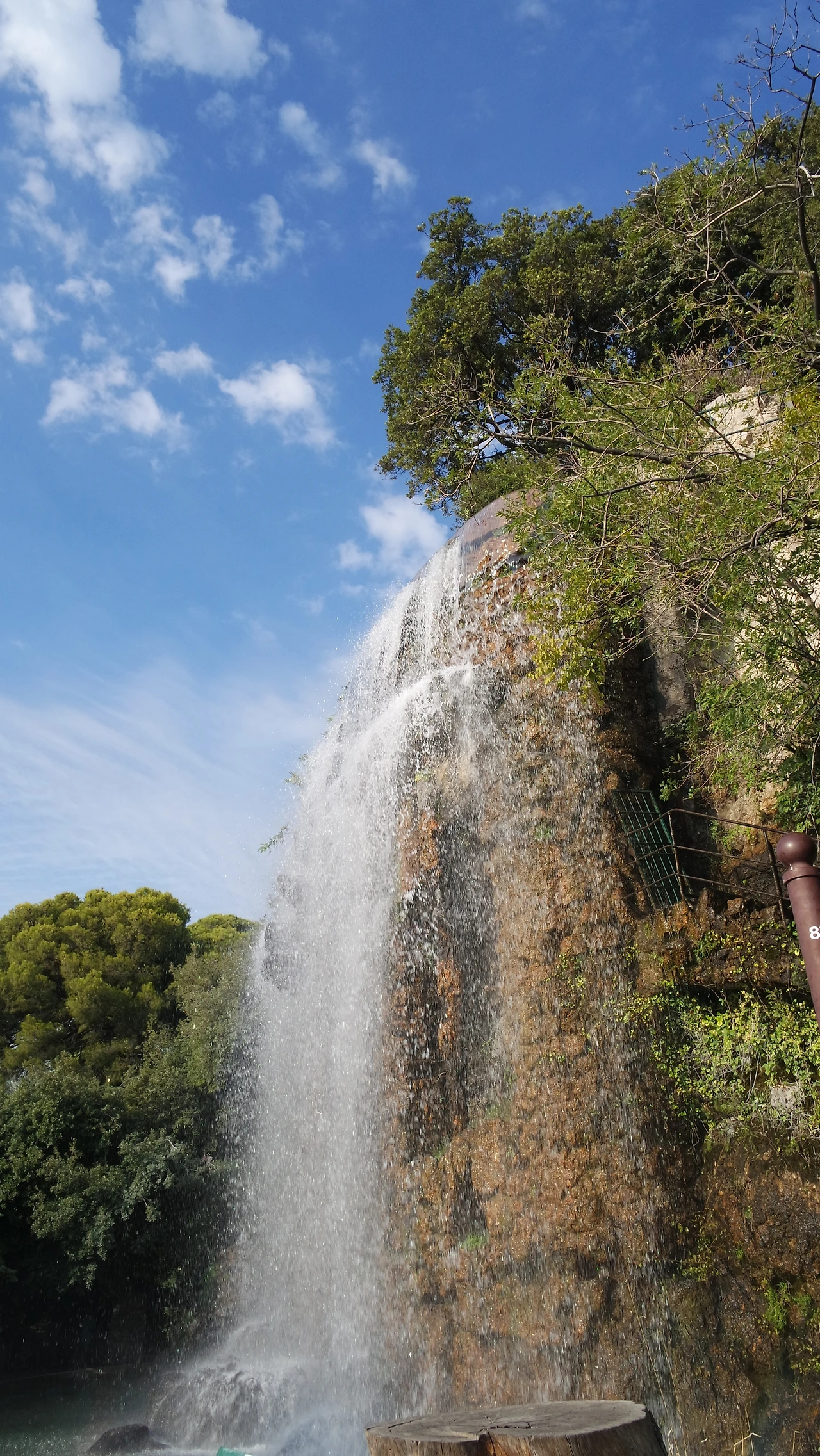 우리는 이제 아래로 내려가기로 했다. 가리발디 광장 표지판을 따라서 올라왔던 계단이 아닌 다른 길로 내려갔다. 그러다가 큰 폭포를 하나 발견했다. 왠지 인공폭포 같았는디 물이 떨어지며 산발적으로 물방울들이 튀었다. 무척 시원했다. 우리 둘 다 몽땅 젖어버렸지만 왠지 모르게 신나서 웃음이 터졌다.