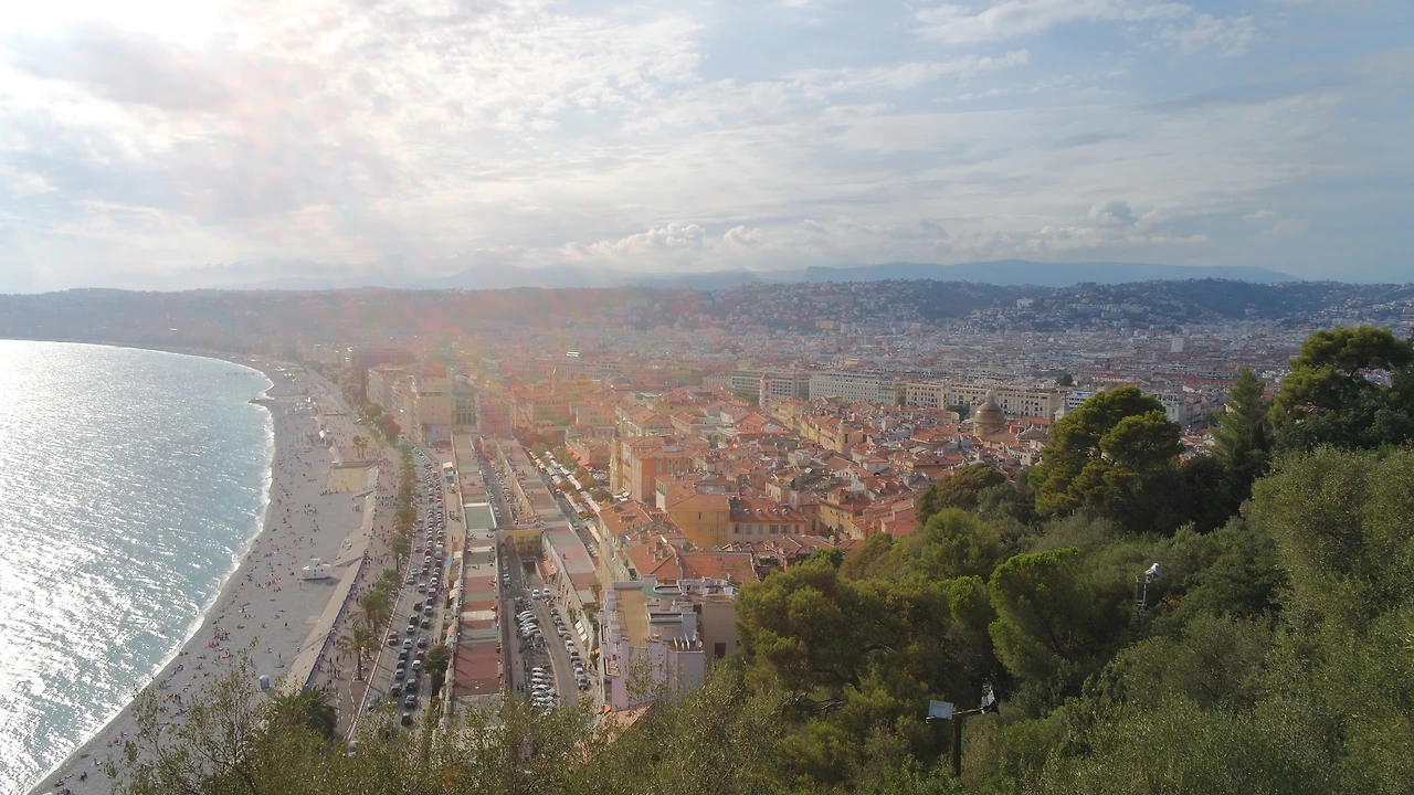 드디어 전망대에 도착! 위에서 내려다 보니 니스는 더욱 아름다웠다. 지중해는 눈부신 햇살을 받아 반짝거렸다. 색이 어찌나 고왔는지 모른다. 빠져들고 싶은 푸른 빛이었다. 이래서 고생하며 기어코 위로 올라오는구나 싶더라. 어디를 가든 높은 지대에 서서 바라본 풍경은 실망시키는 법이 없다.