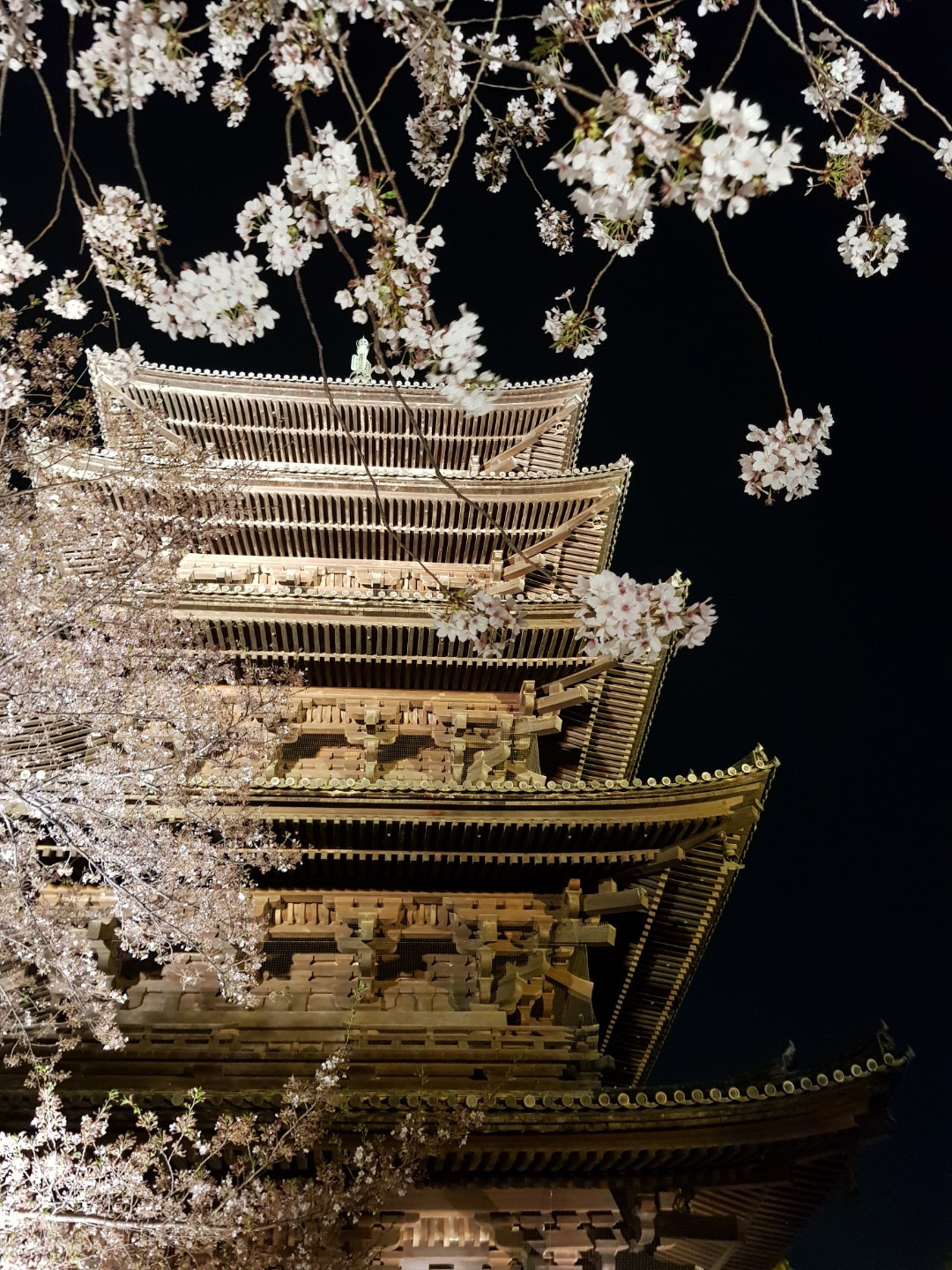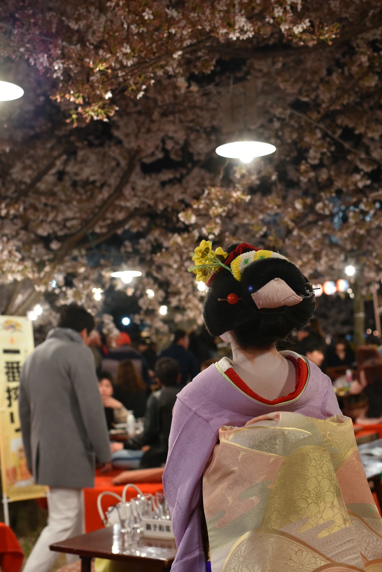 늦은 저녁 야사카 신사 옆 마루야마 공원에 가면 벚꽃 아래에 자리 잡고 앉아 술잔을 기울일 수 있다. 맛있는 음식과 술을 먹다가 고개를 들면 벚꽃이 가득했다. 가끔씩 탁자 위로 벚꽃이 살랑 내려앉기도 했다.