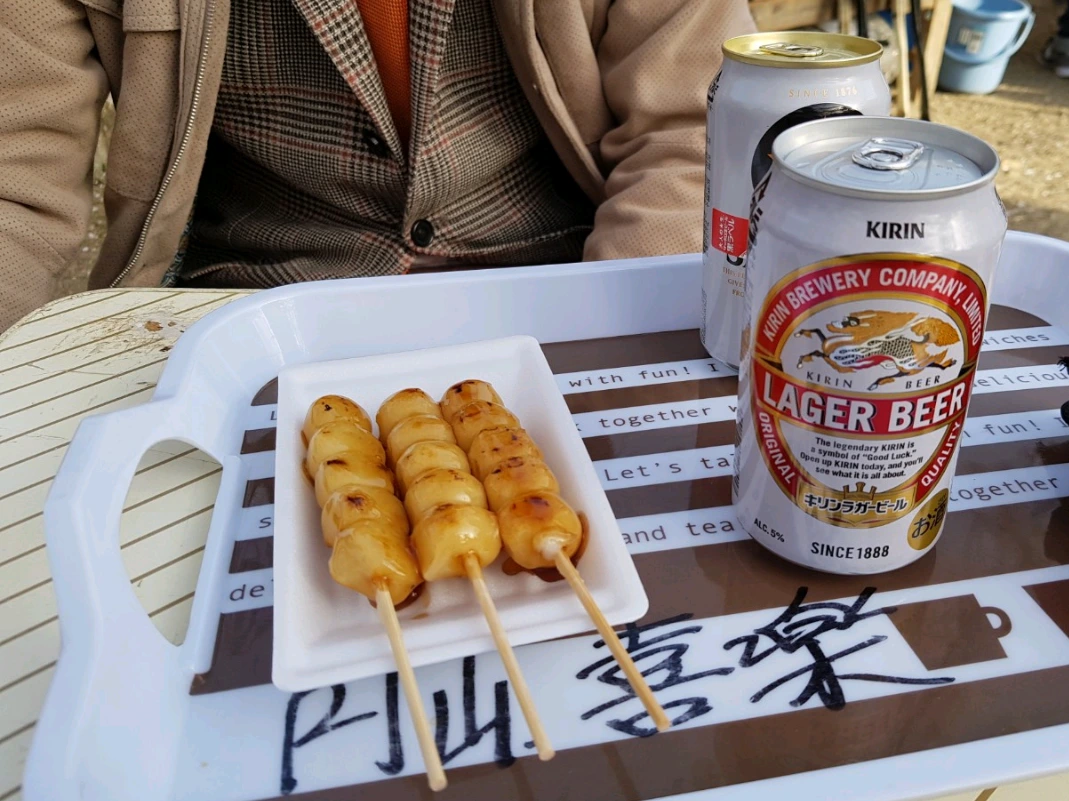 축제 현장마다 간이 점포들이 늘어져있어서 이것저것 골라먹을 수 있었다. 가장 기억에 남는 것은 사쿠라 맥주! 늦은 저녁 니조성 라이트업 구경 갔다가 호기심으로 시켜먹었는데 너무 맛있었다. 살짝 달큰하고 향기가 감도는 맥주였다.