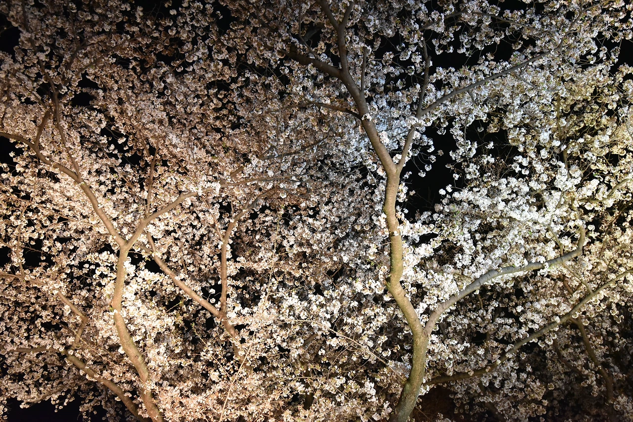 마침 우리가 갔던 날 하늘에는 보름달이 두둥실 떴다. 땅 위는 사람들로 번잡했지만 어둠에 잠긴 밤하늘은 한없이 고요해 보였다. 그 가운데 둥그렇게 뜬 보름달은 활짝 핀 벚꽃과 어우러져 더없이 아름다웠다.