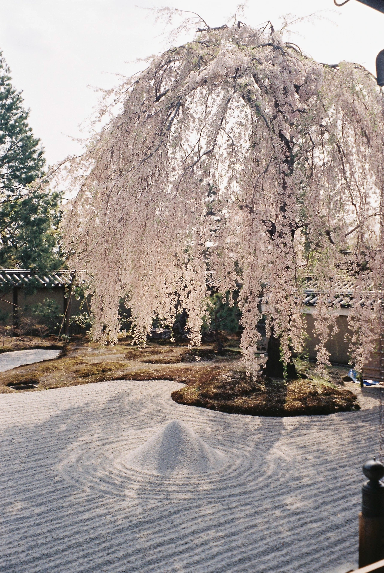 이번 교토 여행에서 가장 아름다웠던 곳은 '고다이지(高台寺)'라는 사찰이다. 하얀 모래알들과 축 늘어진 거대한 핑크빛 벚꽃. 눈앞의 풍경은 마침 저물어가는 햇살을 머금어 따뜻하게 빛났다. 가끔씩 바람이 불어와 벚꽃잎들이 우수수 하얀 모래 위로 떨어졌다. 모래 위에는 벚꽃 그림자가 일렁였다.