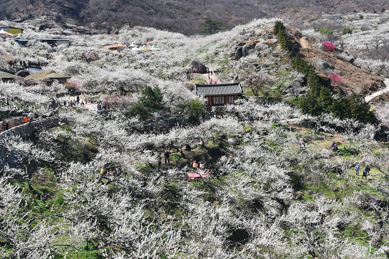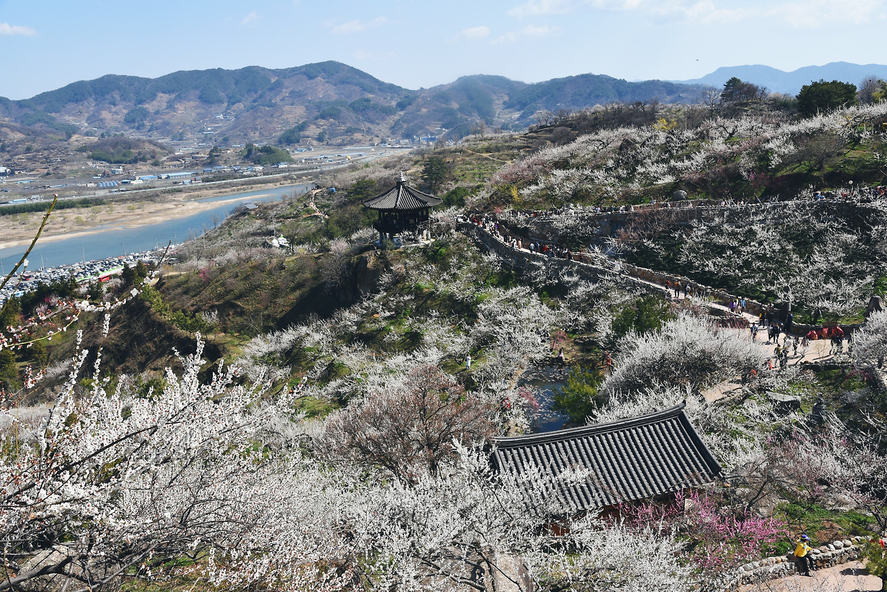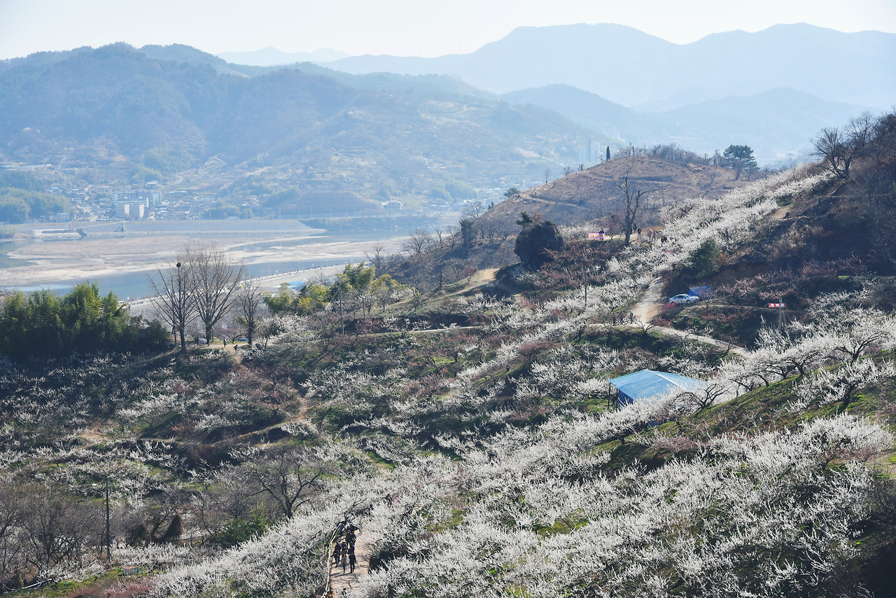 청매실 농원 입구에서 왼쪽편으로 난 길을 따라 걷다가 꼭대기까지 오른 뒤 오른쪽으로 되돌아 나왔다. 방금전까지 저 하얀 매화 속에 파묻혀 있었는데 아득히 멀리 보이기 시작했다.