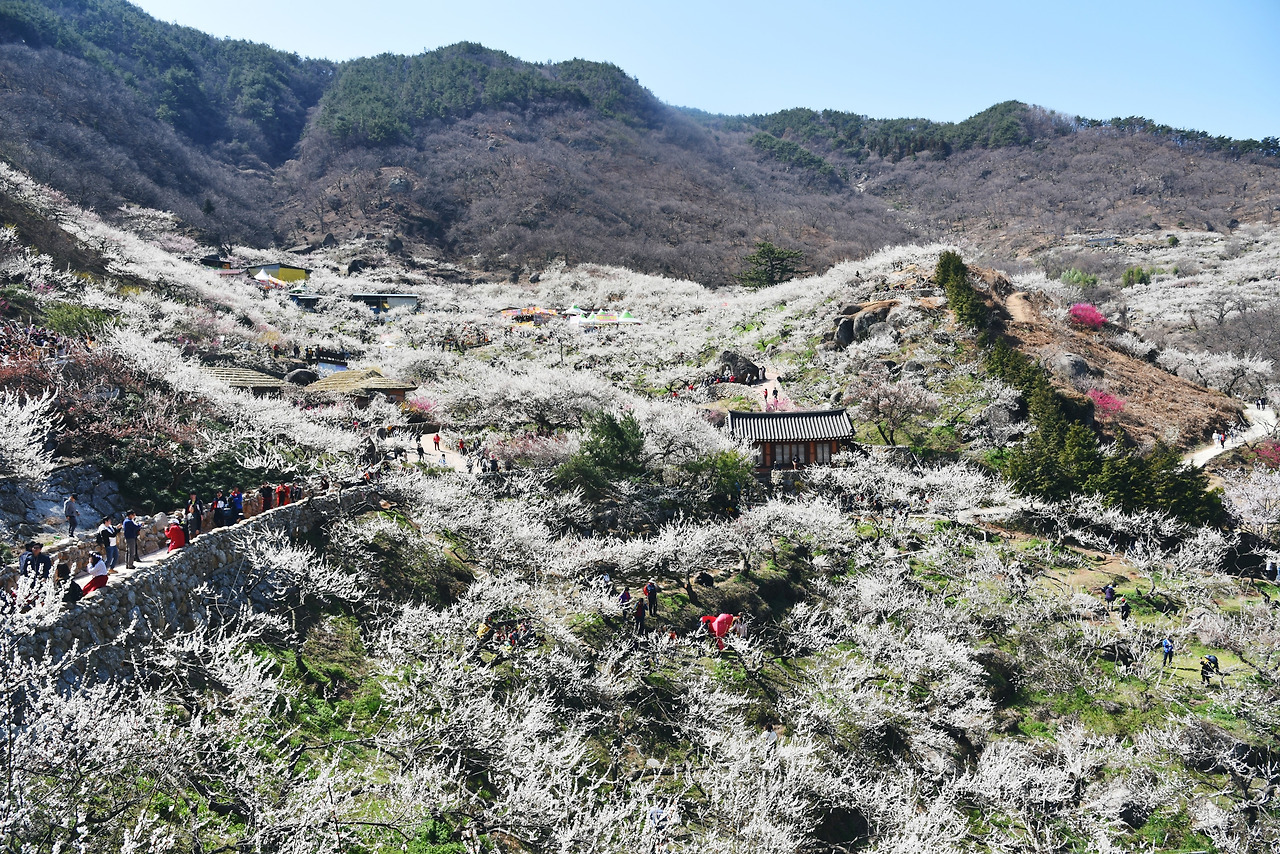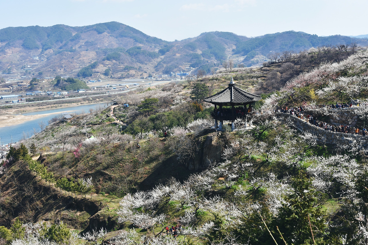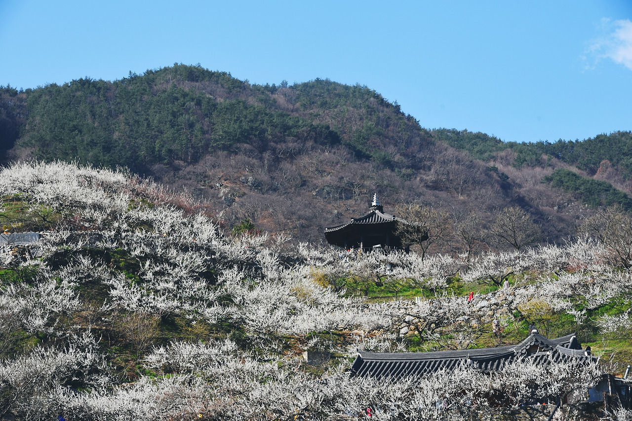 청매실 농원 입구에서 왼쪽편으로 난 길을 따라 걷다가 꼭대기까지 오른 뒤 오른쪽으로 되돌아 나왔다. 방금전까지 저 하얀 매화 속에 파묻혀 있었는데 아득히 멀리 보이기 시작했다.