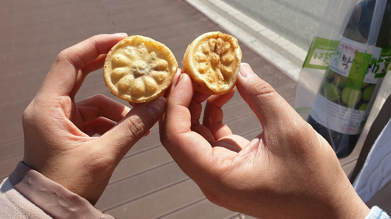 매화 물결을 뒤로하고 주차장으로 향하는 길 가는 길 매화빵을 사서 먹었다. 빵안에 매실이 조각조각 씹히고 은은한 매화향이 나서 참 맛있게 먹었다. 그리고 매실 막걸리도 구입했다.