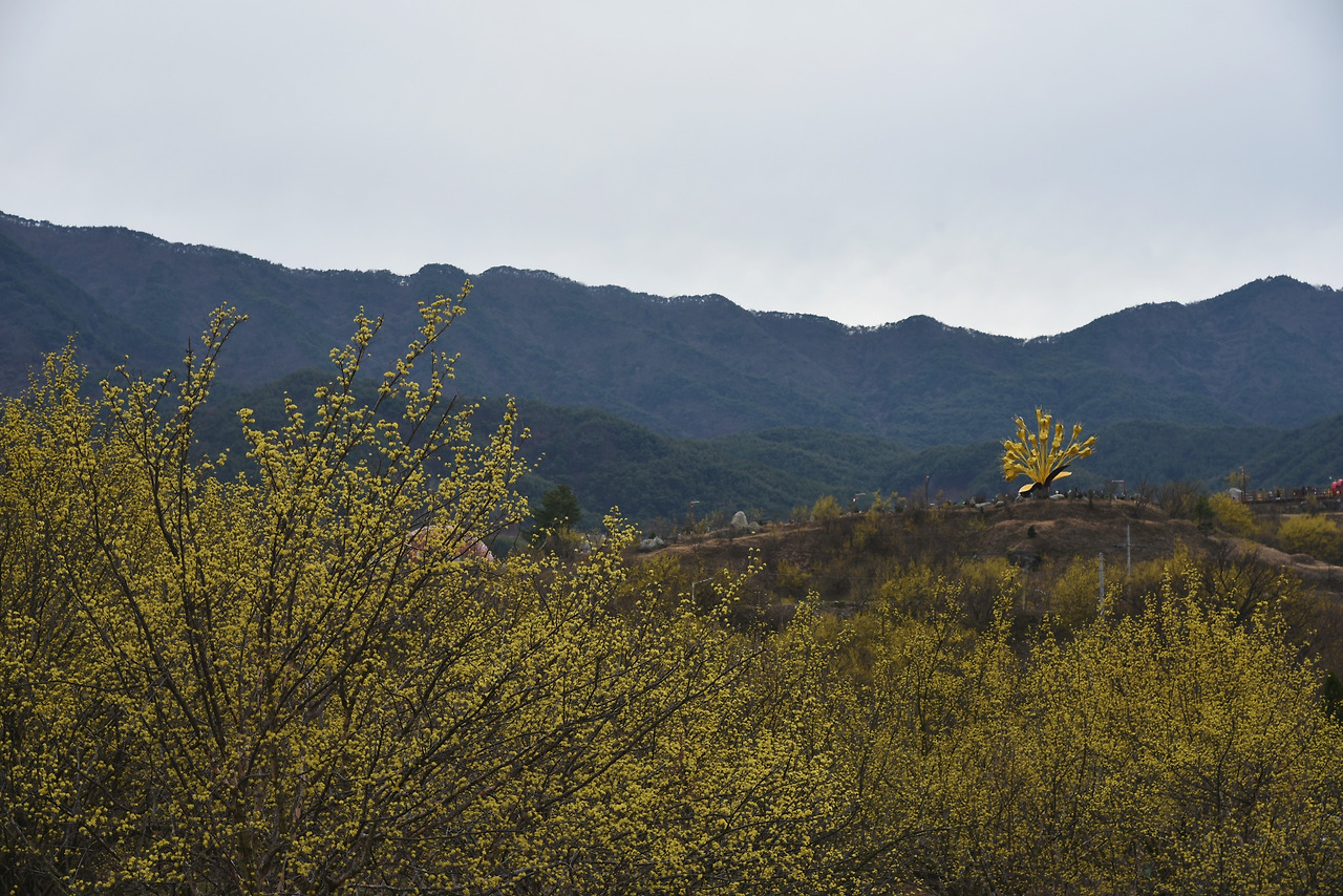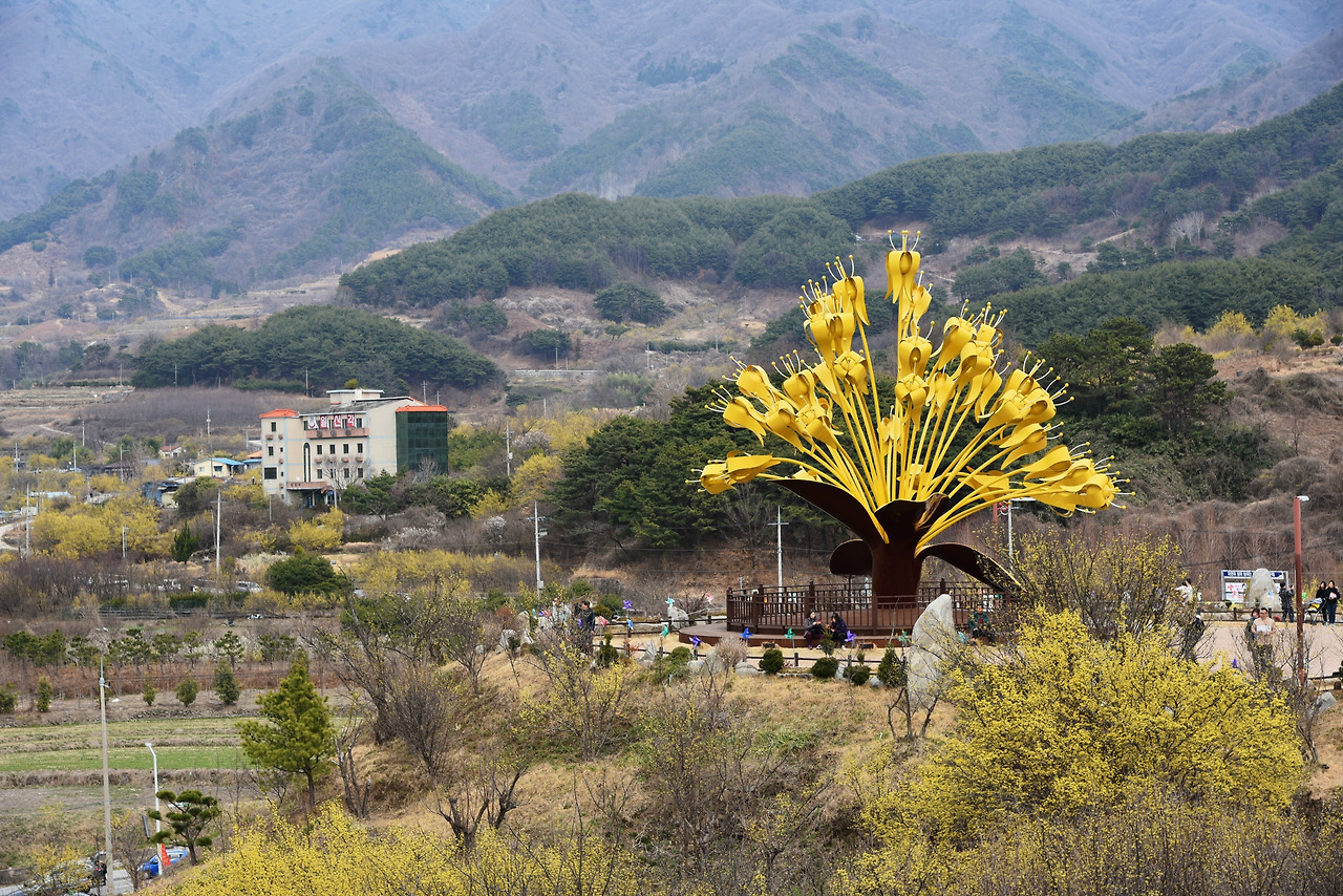 멀리 산수유꽃 조형물이 보였다.
