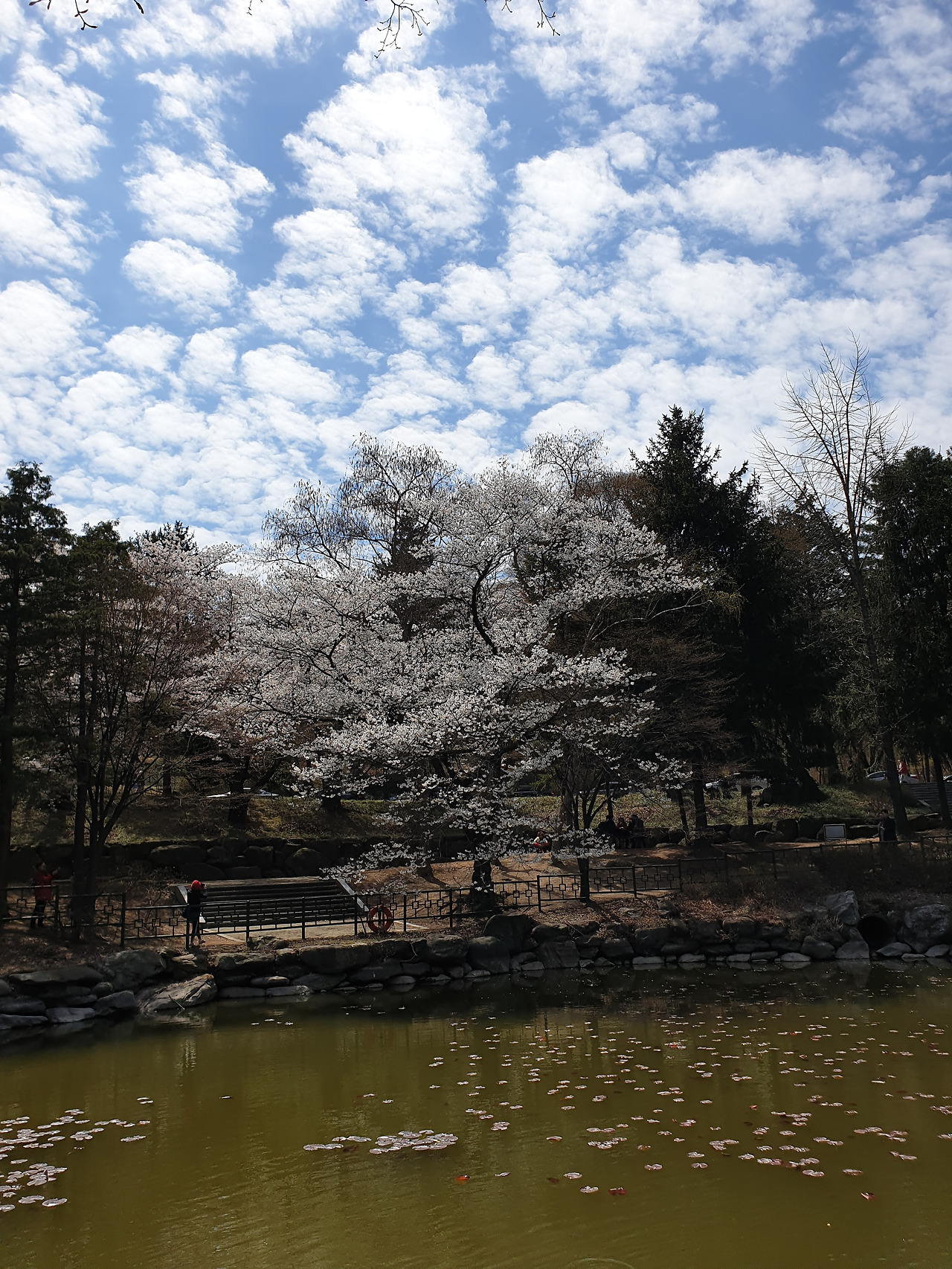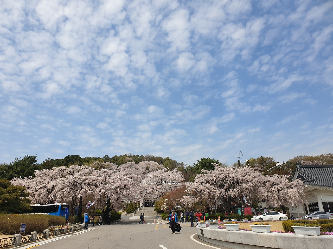 푸른 하늘 위에는 몽실몽실 구름들이 가득했다. 고양이가 발자국을 톡톡 찍어놓고 지나간 것 같았다. 현충원 가장자리를 크게 두르고 있는 길을 따라서 천천히 걸었다. 가는 길목마다 흐드러지게 핀 벚꽃이 가득했다.