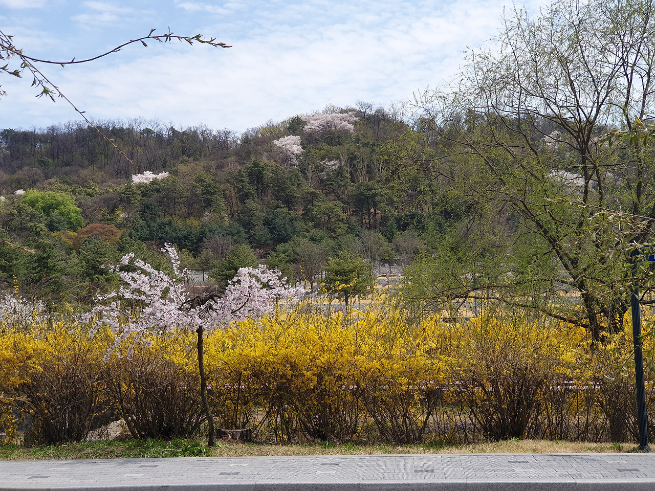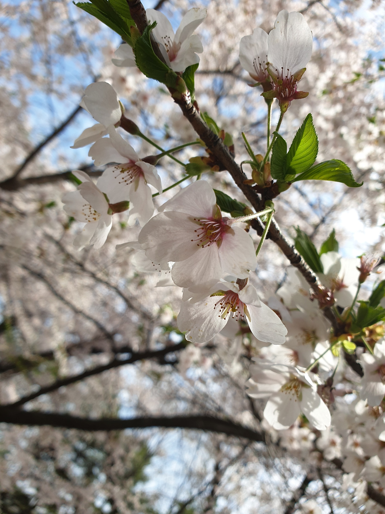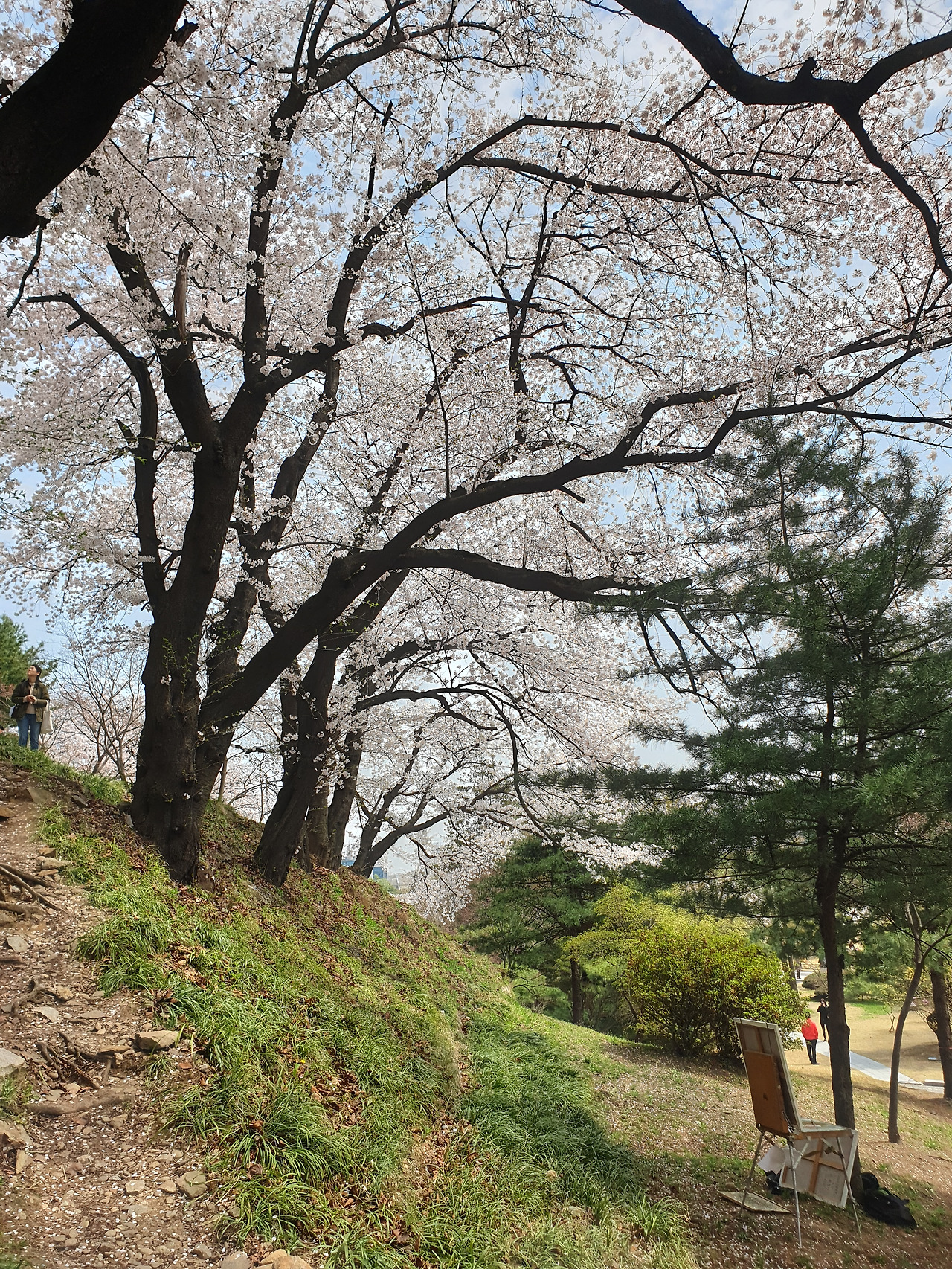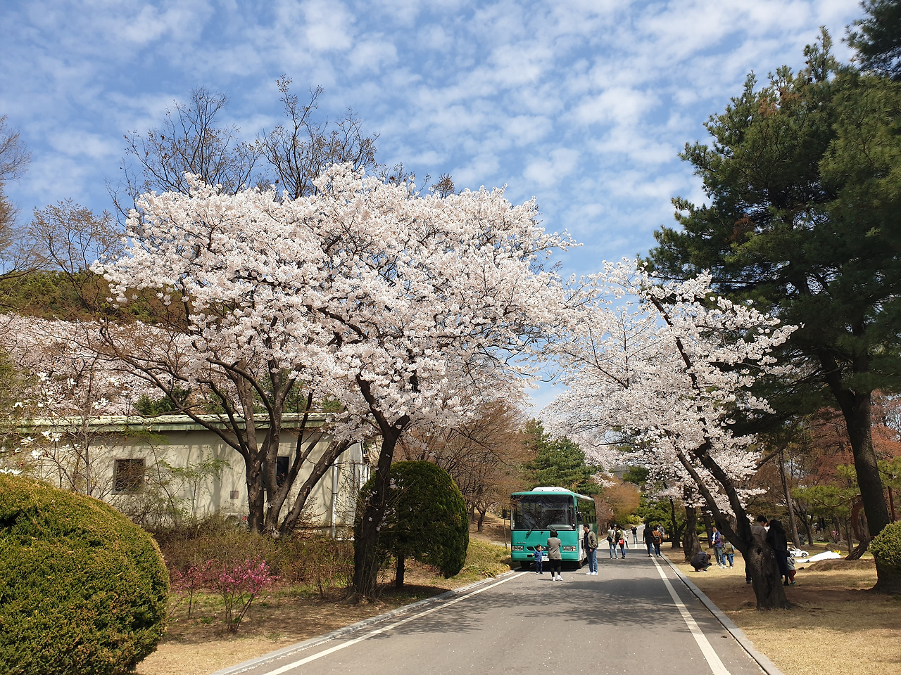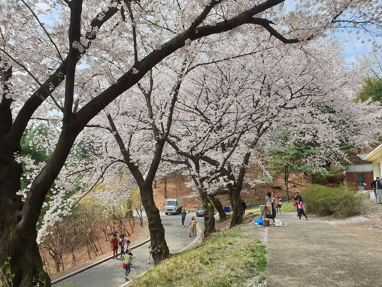 다시 둘레길을 따라 걸었다. 현충원에 있는 벚나무들은 다른 지역에서 보던 것들과는 느낌이 달랐다. 수령이 오래되어 보인다고 해야하나? 나무 둘레 굵기가 두텁고 꽃이 피어난 모양새가 큼지막했다.