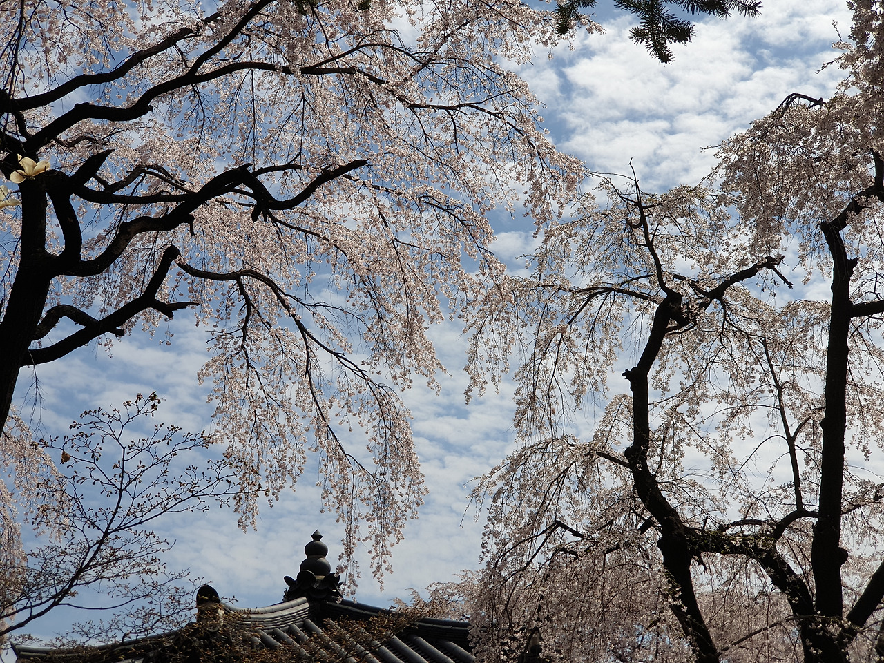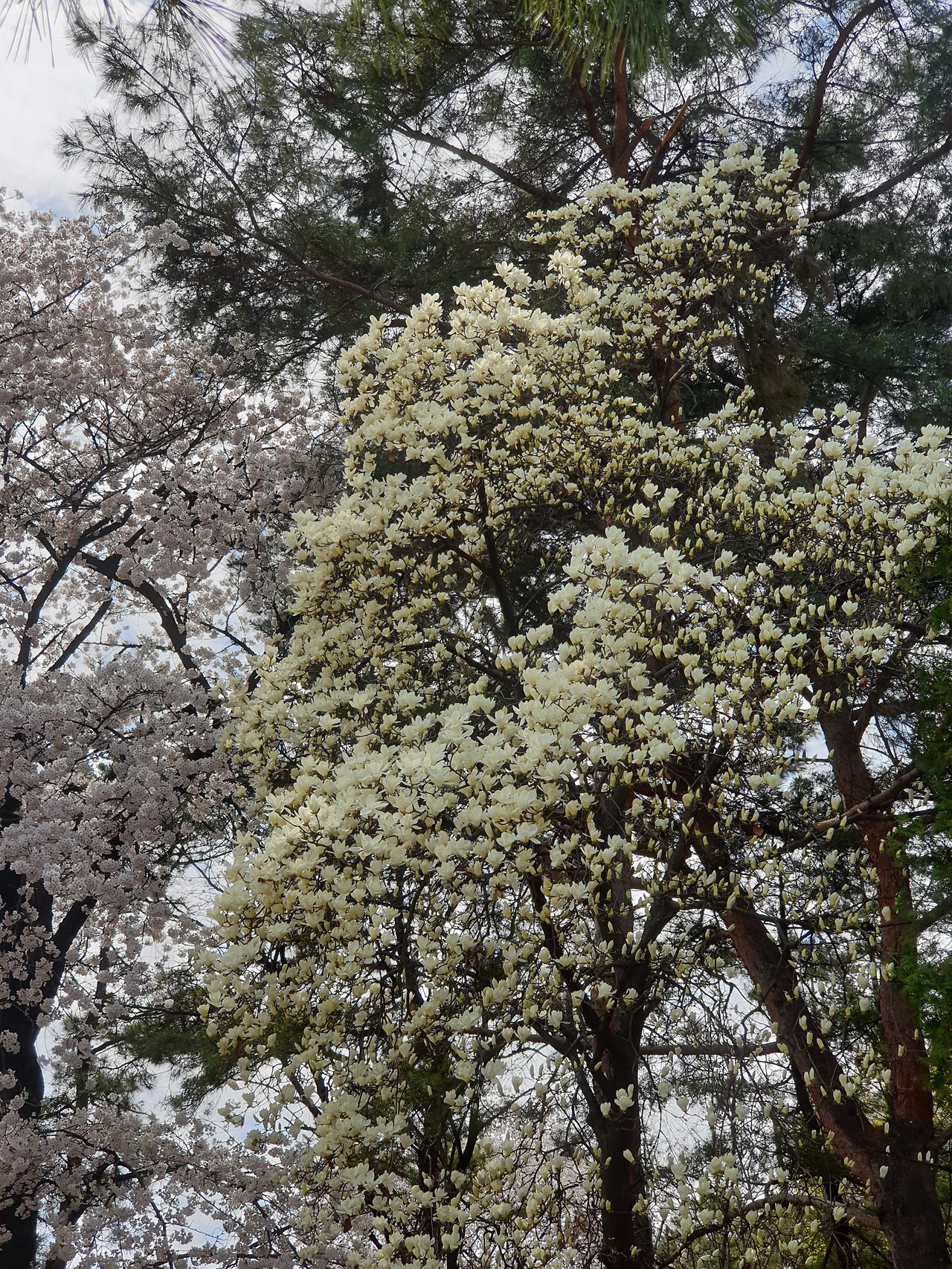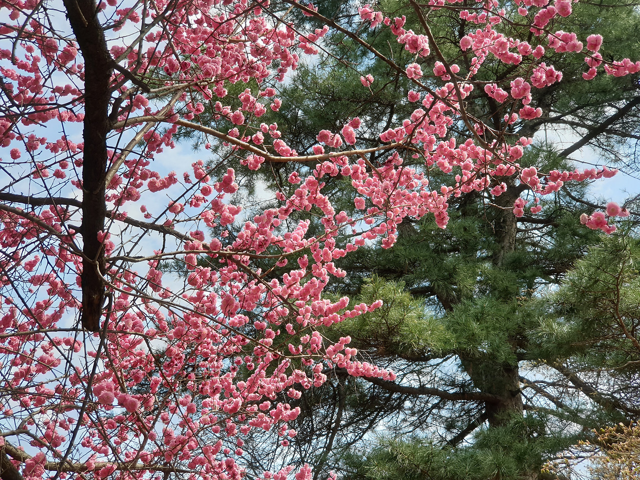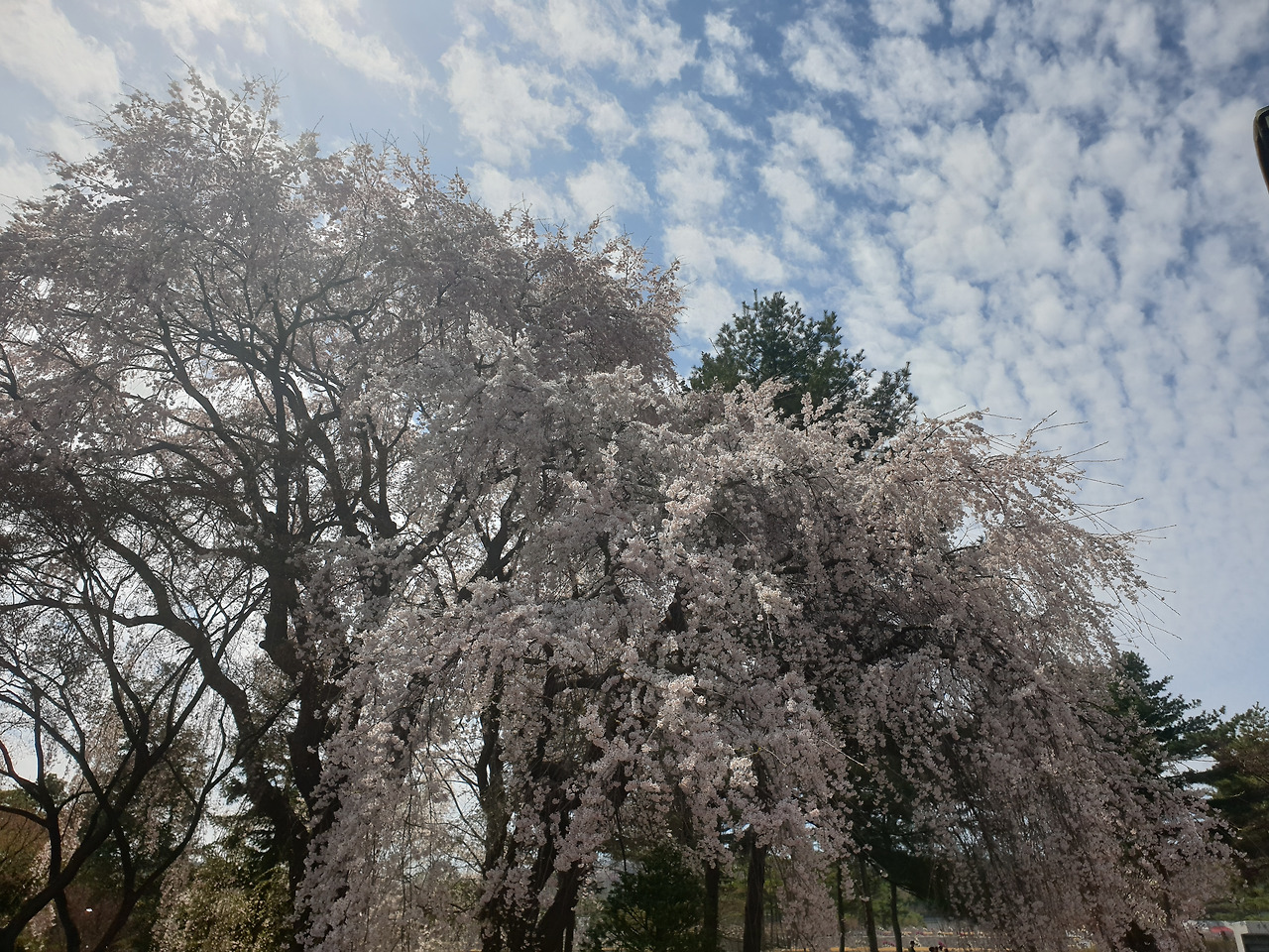 보랏빛 소래풀 군락위로 수양벚꽃이 휘늘어져 있었다. 이곳에 유독 사람들이 바글바글한 이유가 있었다. 벚꽃들이 여기저기 한껏 피어 내 눈을 가득 채웠다. 우리나라에서 수양벚꽃을 이렇게 많이 보기는 처음이었다.