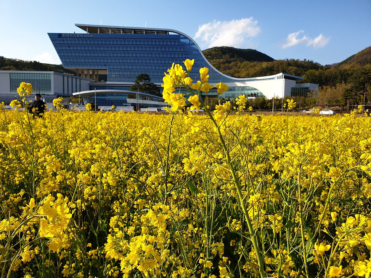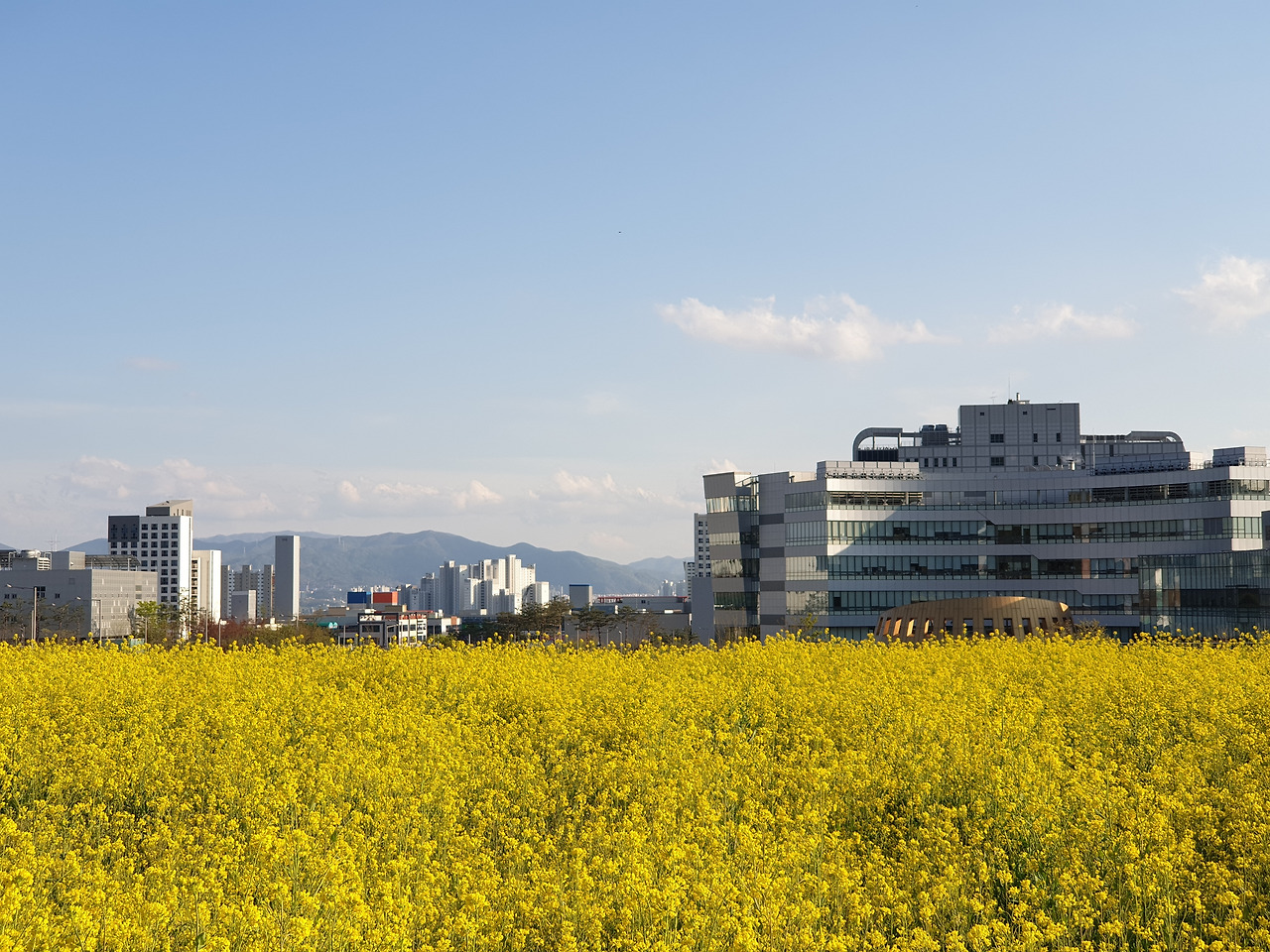 혁신도시에 있는 한국가스공사, 그 앞으로는 넓은 공터가 있었다. 훵하니 잡초만 무성한 부지였는데 지금은 봄 기운 넘치는 유채꽃들로 빽빽하다. 소식 듣고 점심시간에 달려가본 유채꽃밭은 너무 아름다웠다.