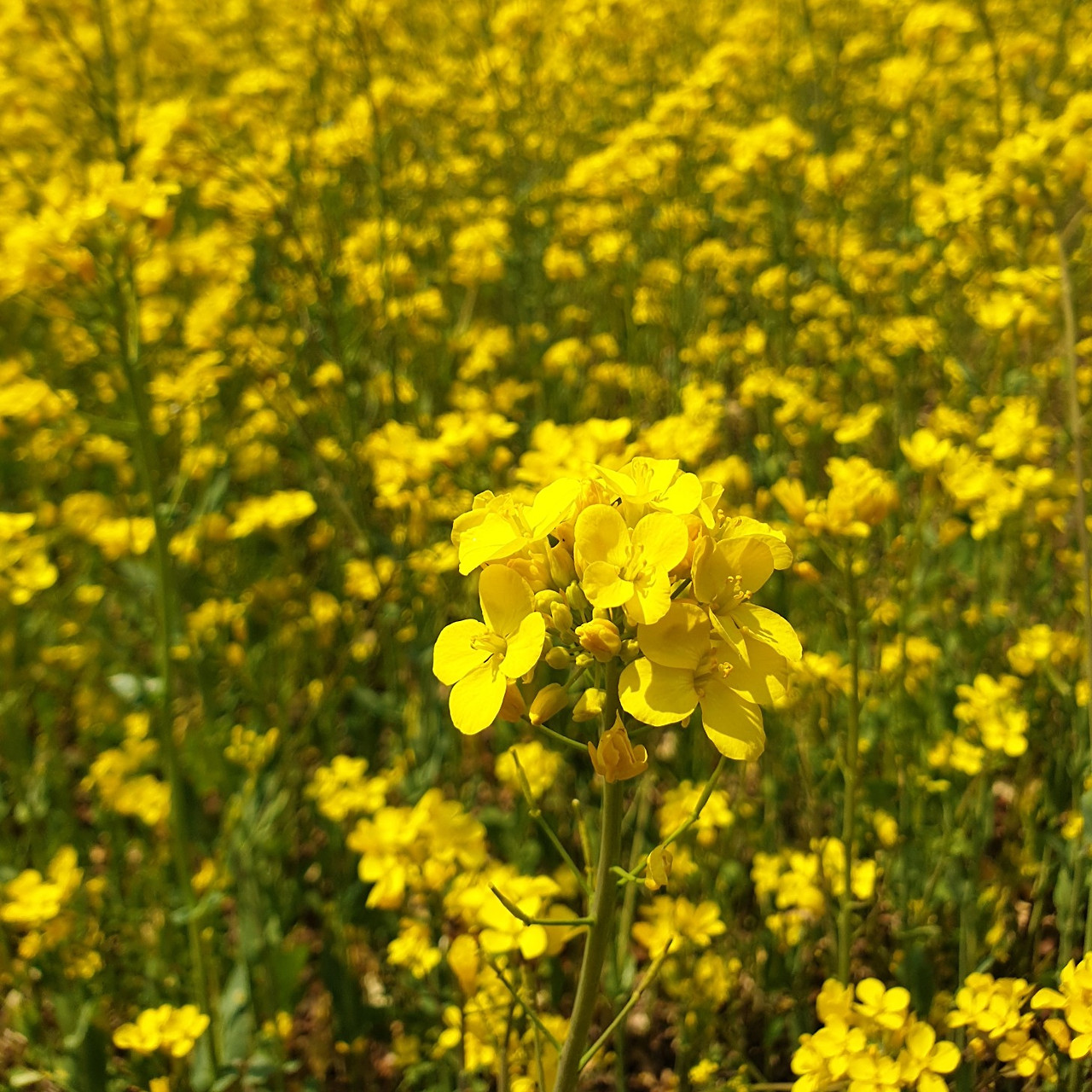 처음에는 길이 나있으면 좋겠다 그런 생각이 들었다. 아무래도 사이사이에 난 길을 걸으며 가까이서 꽃들을 관찰하고 사진도 찍으면 좋을테니깐. 그런데 길이 없으니 이렇게 멋있는 유채꽃밭을 볼 수 있었던 것이다. 이리저리 사람 손과 발에 상하지 않아 더 아름다웠다.