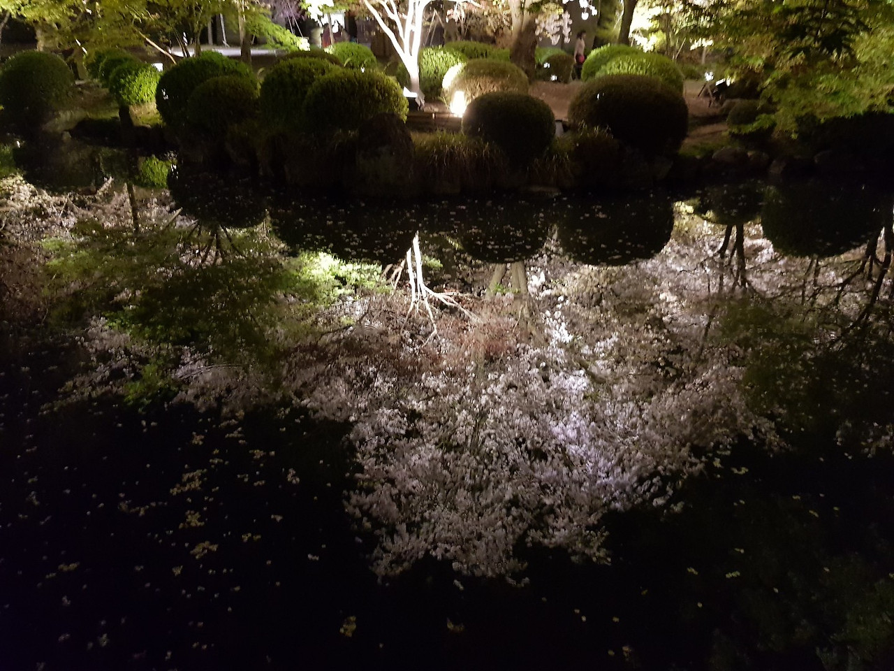 물 위로 꽃잎들이 흩어져 있었다.