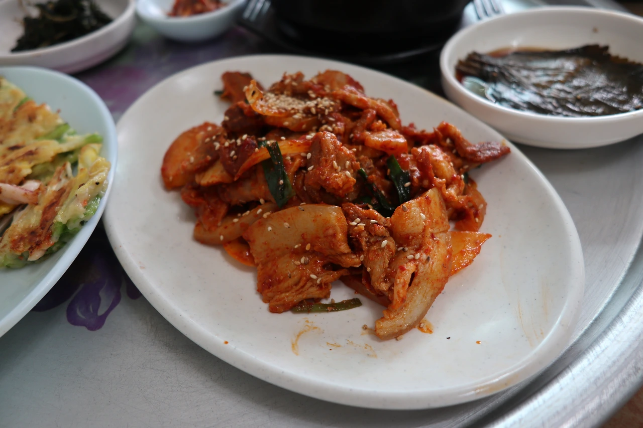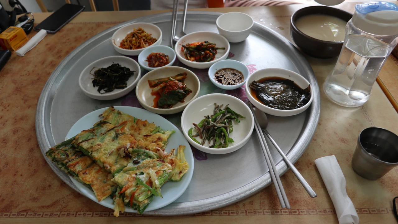 우리가 점심을 해결하러 간 곳은 광한루 근처 '부부식당'이라는 곳이다. 인심 좋은 주인 할머니와 할아버지가 운영하고 계신다. 우리는 파전 하나랑 추어탕, 돼지 주물럭 그리고 찹살 동동주를 시켰다.