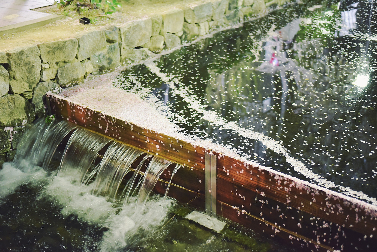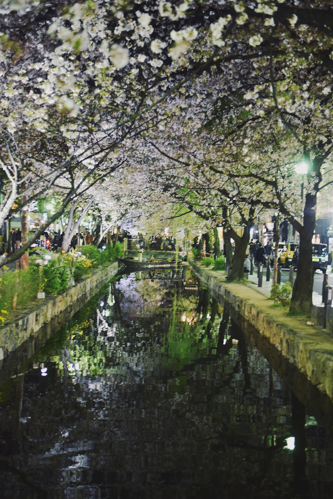 다시 식당을 찾아 기온 거리를 헤맸다. 실개천 위로 떨어진 꽃잎들은 밤하늘에 떠있는 별들처럼 빛났다. 밤이지만 환하고 생기가 넘쳐 보였던 것은 흐드러지게 핀 벚꽃 덕분인가보다. 하늘에도 땅에도 벚꽃이 가득했다. 우린 복작거리는 거리를 걸으며 낭만에 젖어들었다.