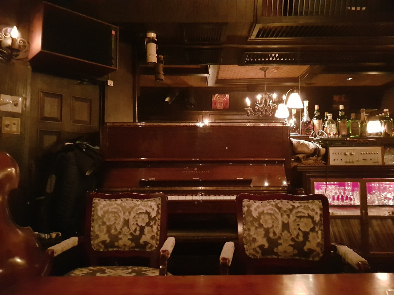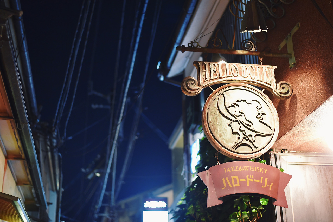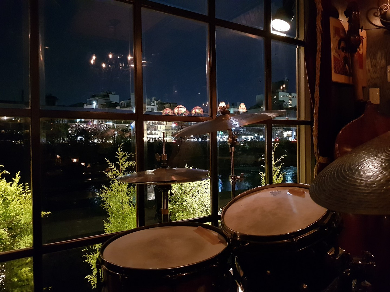 든든하게 배를 채우고 예약해둔 재즈 공연을 보기 위해 이자카야 밖으로 나왔다. 펑키한 골목길을 지나 헬로 돌리 간판을 향해 걸었다. 두근거리는 마음으로 굳게 닫힌 문을 열고 안으로 들어갔다. 직원은 드럼이 놓여있는 자리 옆 테이블에 우리를 안내했다. 운좋게도 우리는 바로 눈 앞에서 공연을 볼 수 있었다. 맞은편에는 피아노가 놓여 있었고 창밖으로는 새카만 가모가와가 보였다.
