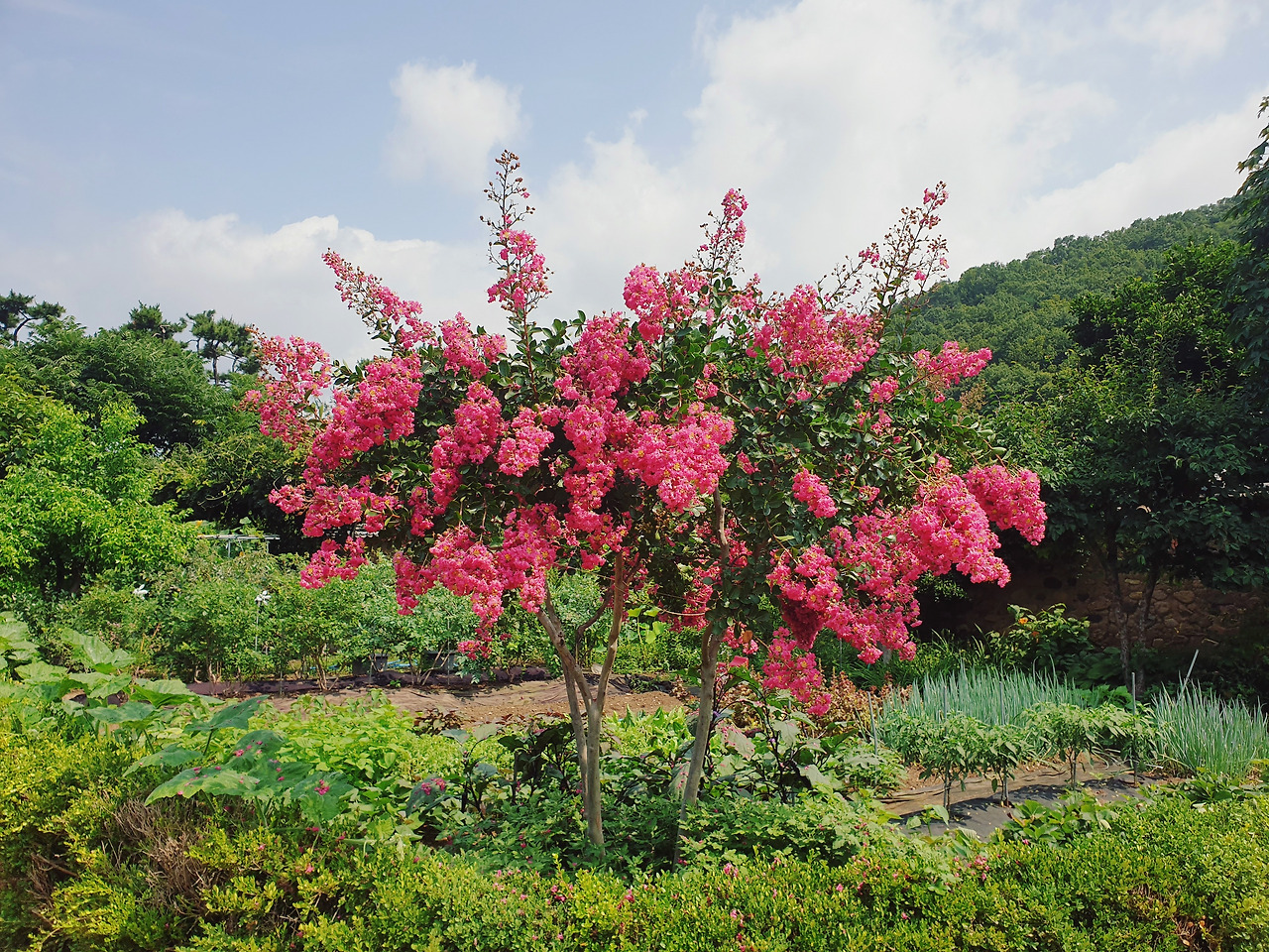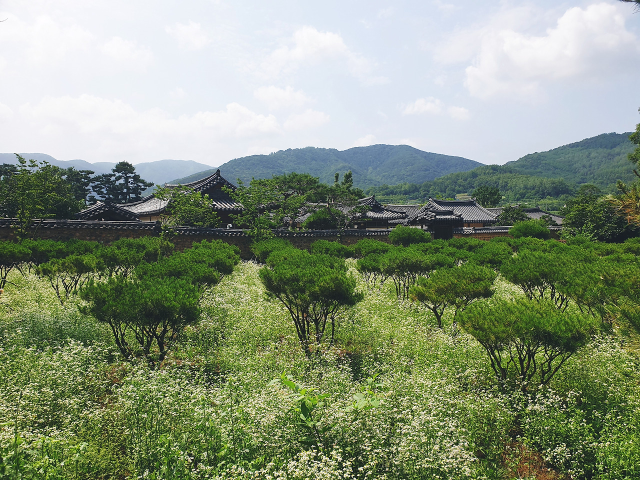 연못을 지나서 가옥을 두르며 난 흙길을 따라 걸었다. 눈 돌리는 곳마다 꽃들이 피어 있었고 푸릇한 논 위의 벼들은 파르르 바람에 흔들렸다. 멀리 보이는 산도 여름을 맞아 푸르딩딩했다. 이파리 텅 빈 가지들로 가득했던 산을 본지가 엊그제 같은데 어느새 봄이 지나고 여름이 왔다.