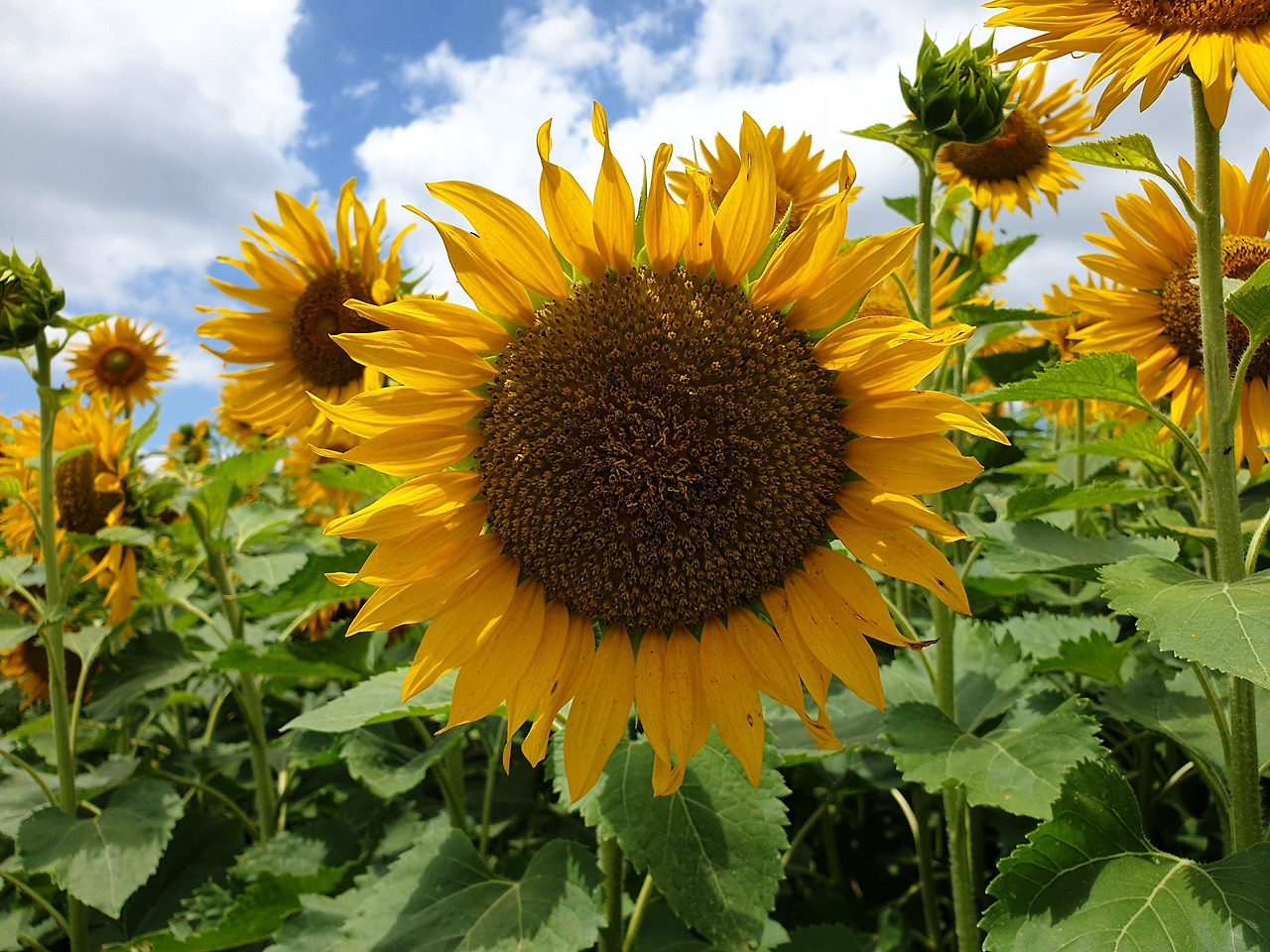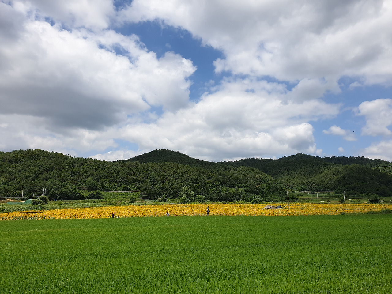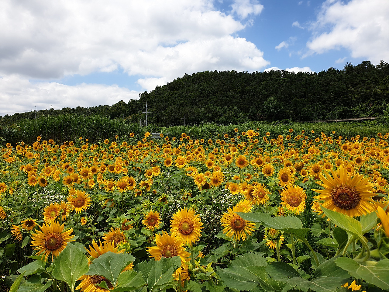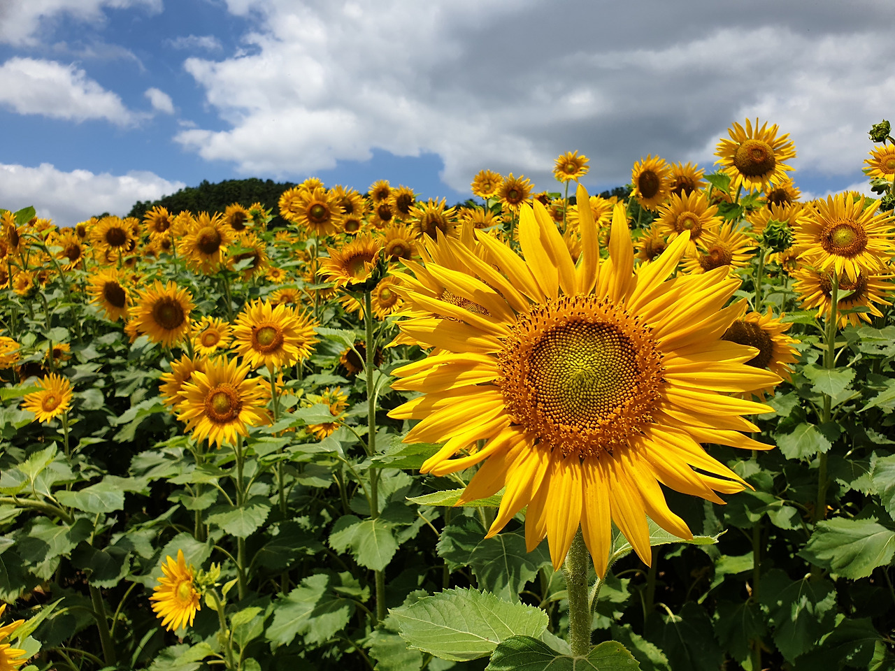 노오란 해바라기들이 끝도 없이 펼쳐졌다. 온 사방이 해바라기였다. 해바라기들은 갓 피어난 듯 생기가 넘쳤다. 노란 물결 위로 눈부시게 푸른 하늘이 보이고 그 위로 새하얀 구름들이 둥둥 떠다녔다. 왜 이렇게 날씨가 좋던지! 맑은 하늘과 함께라서 해바라기가 더 아름다워 보였다.