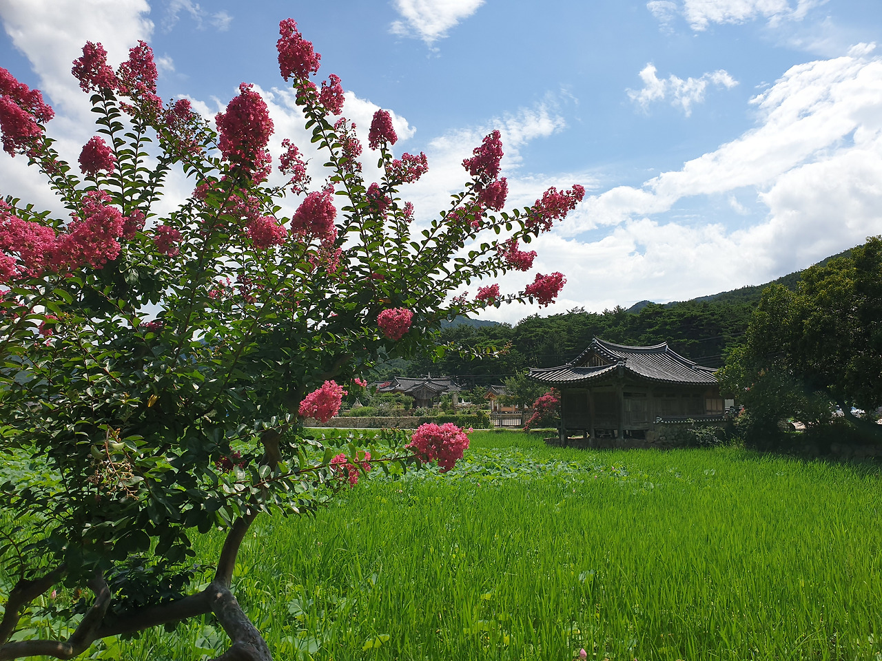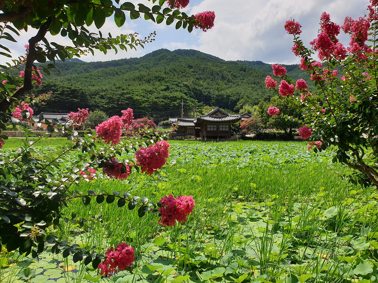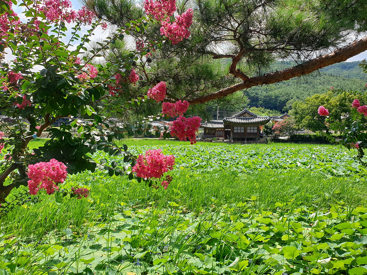 까마득한 먼 옛날에 붙여진 이름이 아직까지도 이어져오고 있으니 신기하다. 못 둘레를 걷다 보면 배롱나무 가지 사이로 한옥 한 채가 보인다. 이요당(二樂堂)이라는 정자인데 조선시대에 만들어졌다. 이요당 덕분에 못 풍경이 더 운치게 느껴진다. 멀리 보이는 못 위로는 연이 빽빽하게 자리잡고 있었다. 연꽃은 간혹가다 한 두 송이 정도 피어나 있었다. 아마도 일주일 뒤 즈음이면 온사방이 연꽃으로 가득할 것 같다. 그 시기 즈음 왔으면 코 끝을 찌르는 연꽃향기를 가득 맡았을텐데 아쉬웠다.