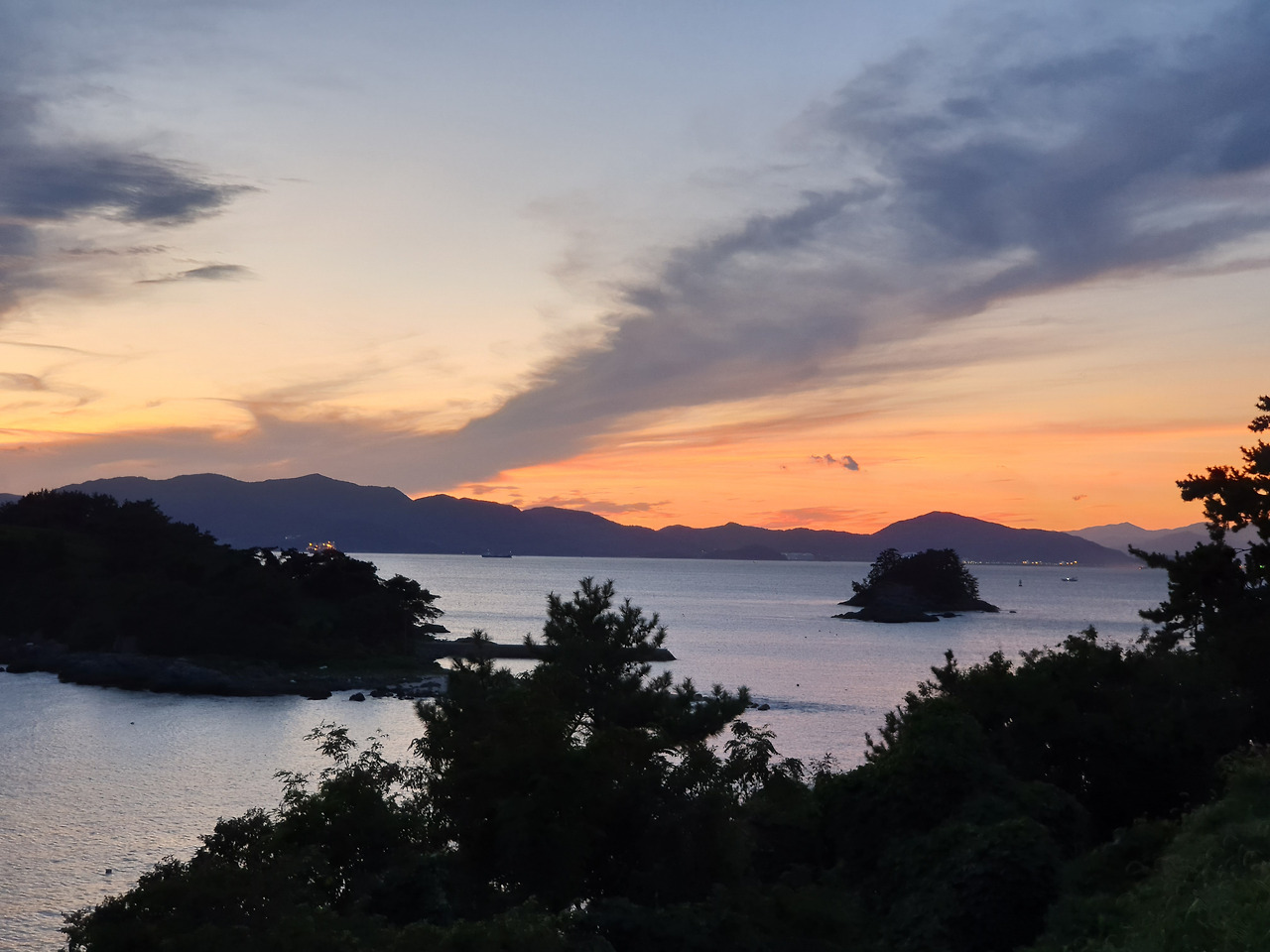 하늘은 점점 더 불타오르고 붉은 노을은 절정을 향해 달려간다. 해는 넘어가고 보이지를 않았다. 아마도 저 여수 땅 너머에 있으려나?
